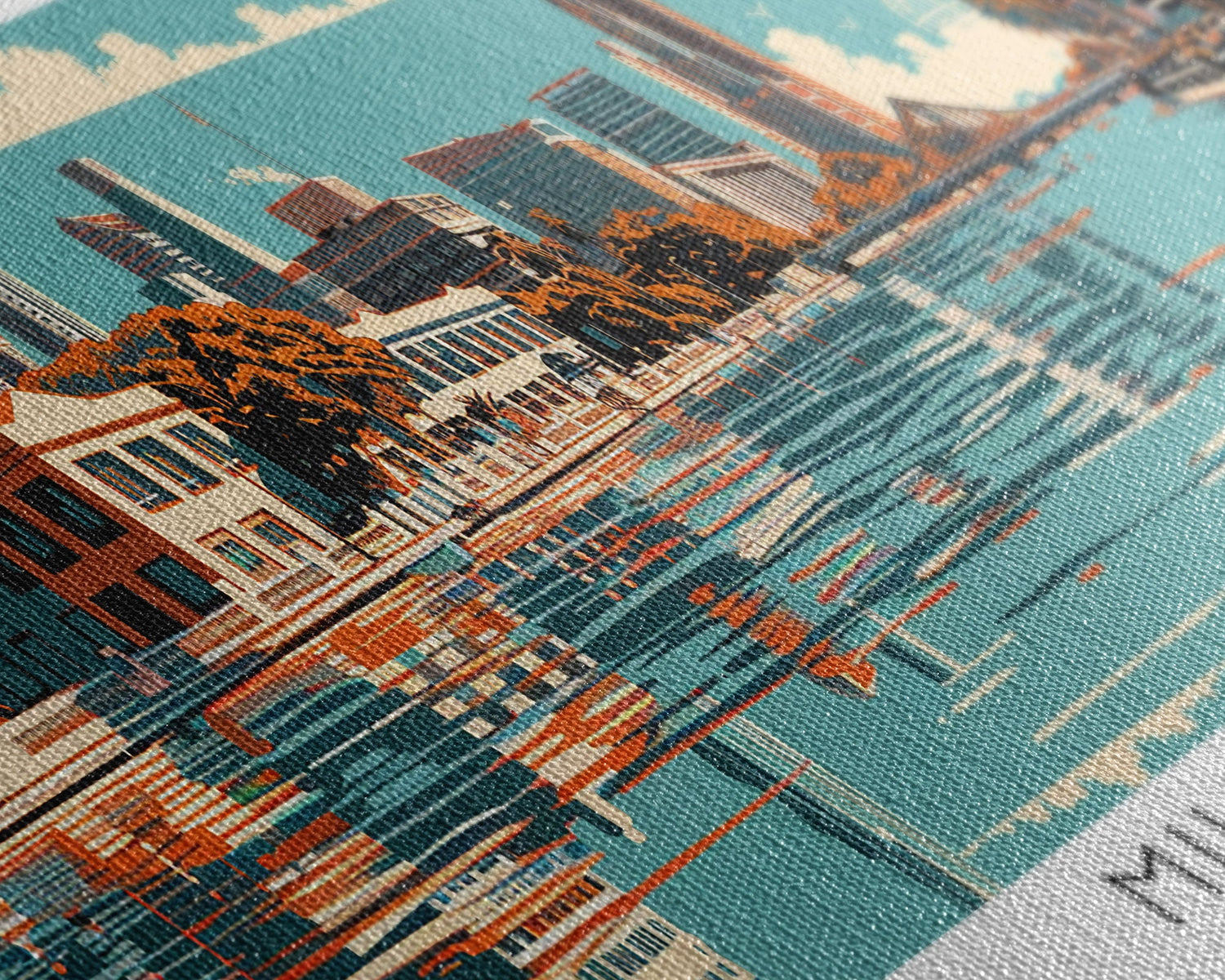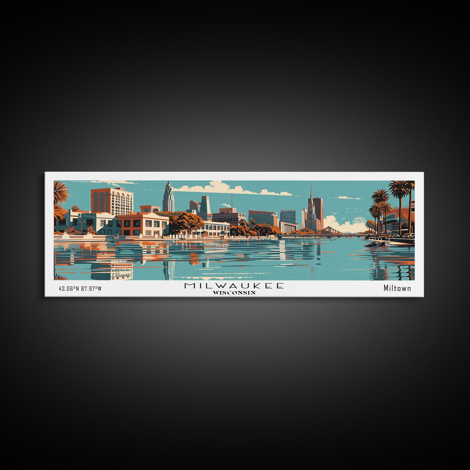 Milwaukee Wisconsin Panoramic Wall Art, Mid Century Modern Framed Canvas Print, Retro Pop Art Travel Poster, Office Decor, Living Room Art