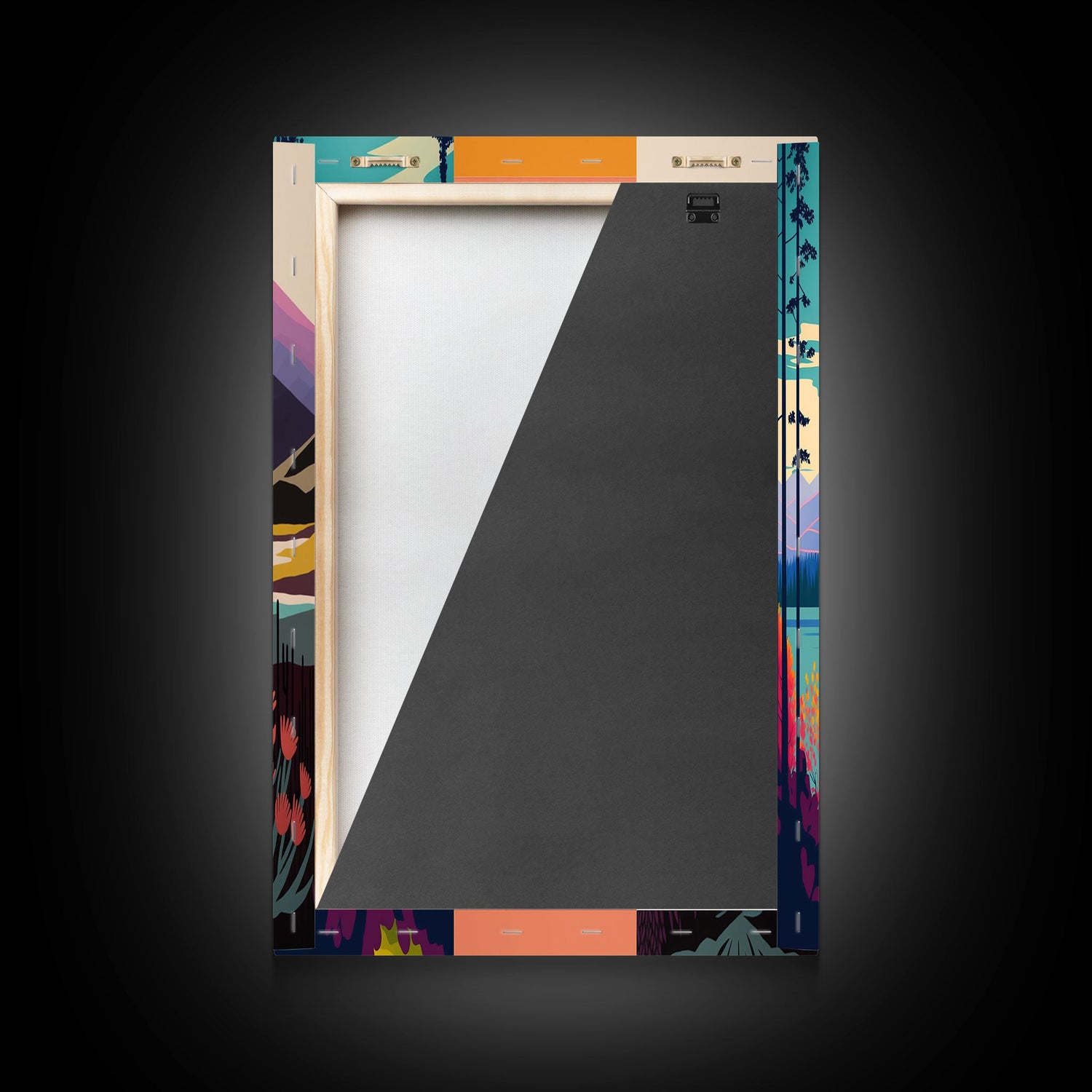 Minimalist Landscape Decor, 3 Piece Canvas Print, Framed Wall Art, Pacific Northwest Inspired Scandinavian Decor, Retro Style