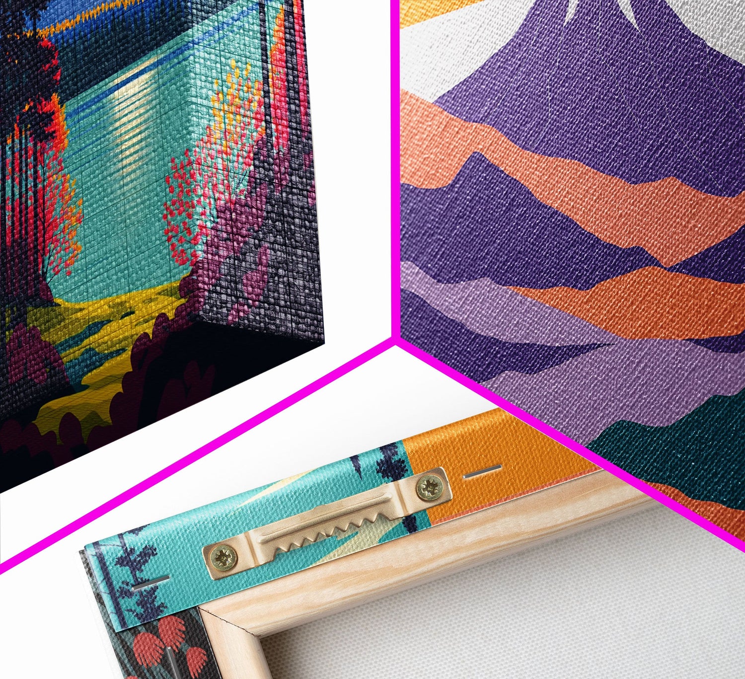 Hello and thank you for taking the time to view our modern high quality giclée artwork! We offer both posters and stretched canvas prints. Our posters are printed on Ultra Matte 60 lb / 230 GSM high quality photo paper, with a thickness of 10 mil. Our canvases are printed on museum grade 350 GSM canvas material with ECO friendly archival grade ink, then hand stretched and stapled over premium, FSC certified and shrink resistant frames. Designed and built to last a lifetime.