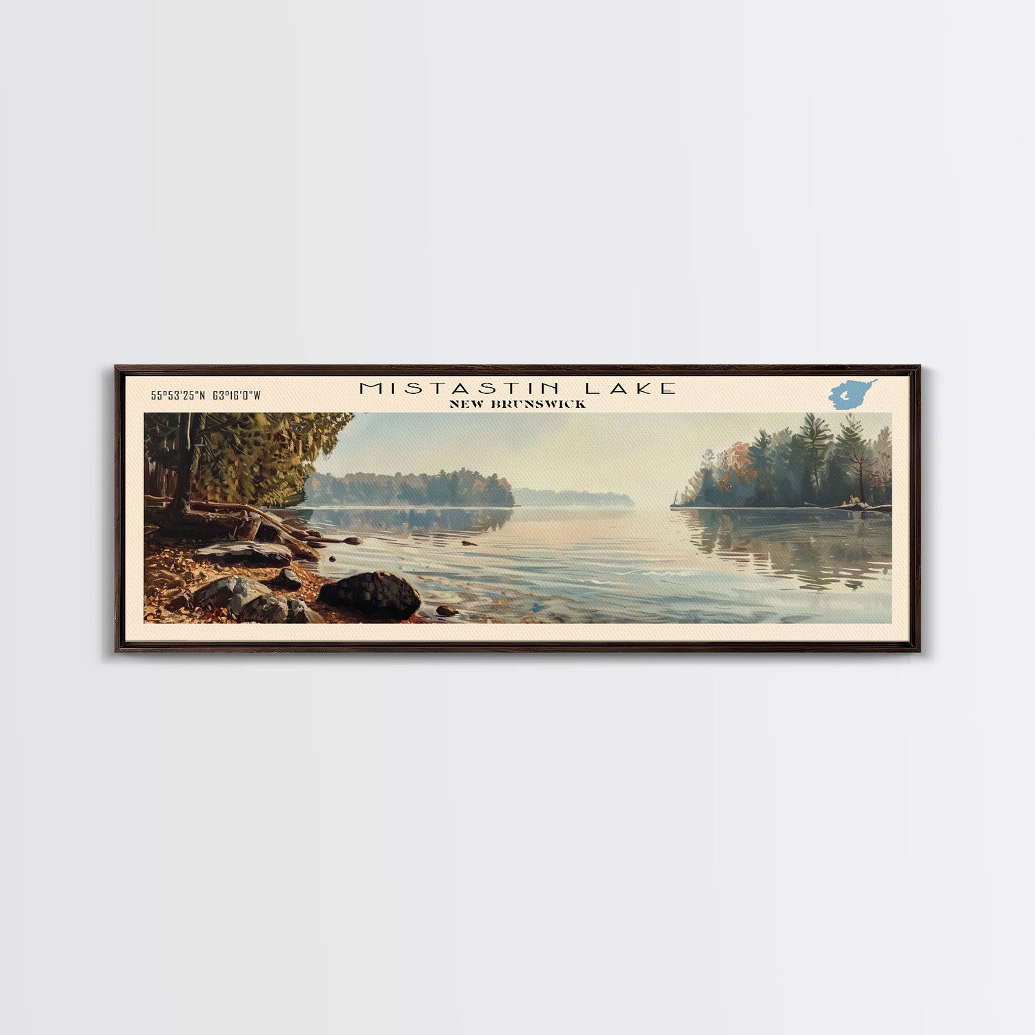Mistastin Lake Framed Canvas Print, Lake House Decor, Panoramic Wall Art, Travel Poster, Landscape Painting, Modern Art