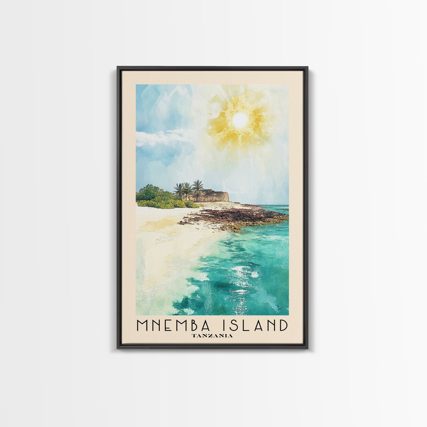 Mnemba Island, Tanzania Watercolor Beach Print, Vacation Gift, Tanzania Wall Art, Framed Canvas Print, Framed Beach Painting