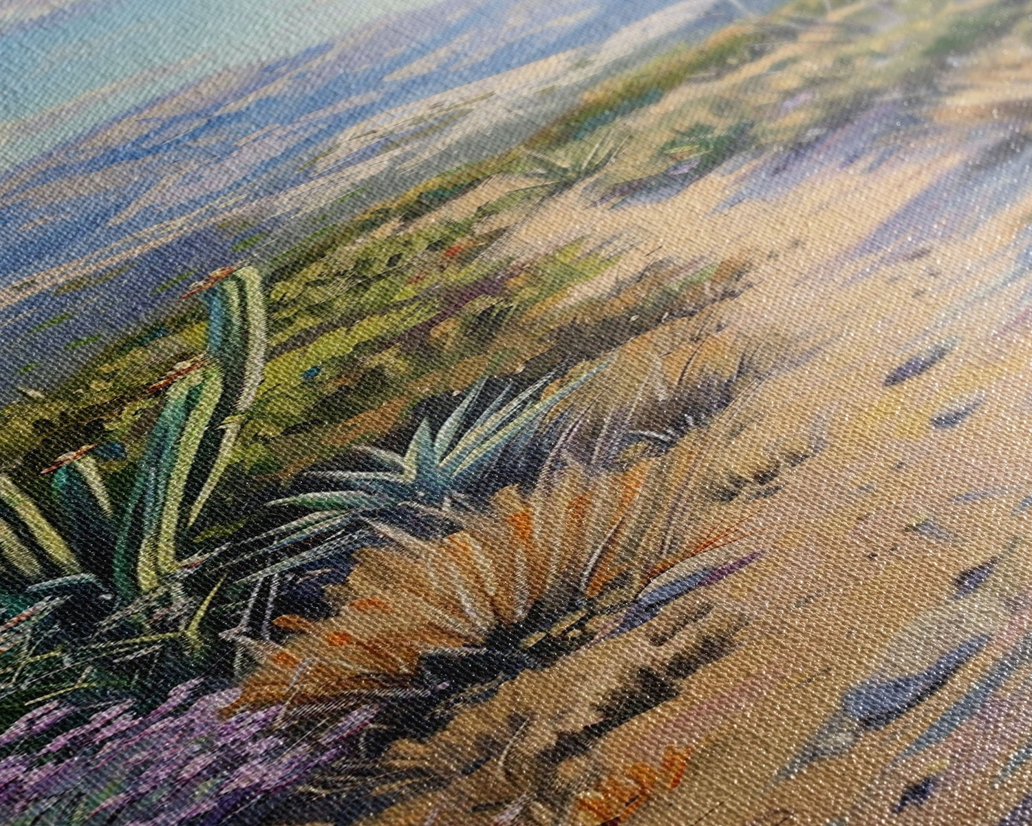 Most of our canvases are made in the USA, with the exception of canvases ordered with the light oak unstained frames, and any large canvases (24x48, 30x60, 16x48 and 20x60) ordered WITH a frame. These are temporarily made in and shipped from Europe, while we try to find a more consistent supplier in the USA.