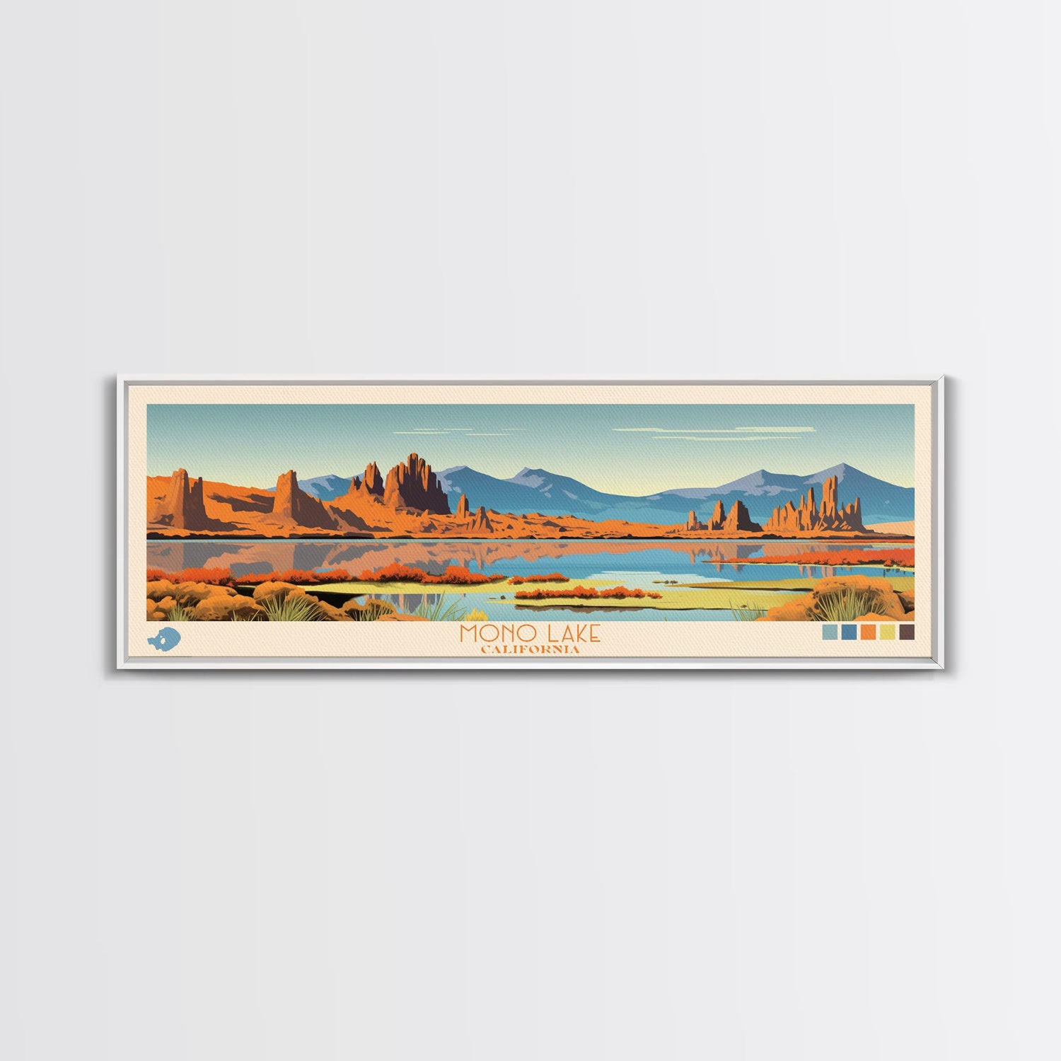 Mono Lake, California Framed Canvas Print, Panoramic Wall Art, Midcentury Modern, Pop Art, Home Decor, Travel Poster, Living Room Art