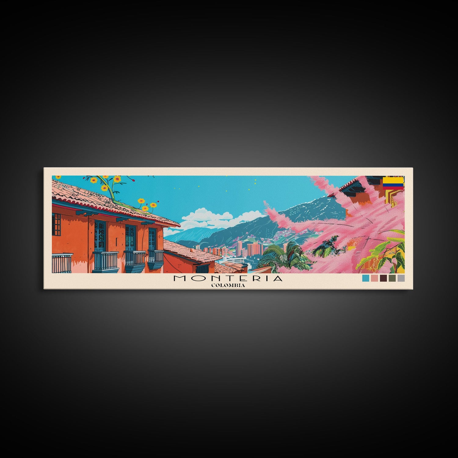 Monteria, Colombia Panoramic Canvas Print, Monteria, Colombia Painting, Colombia Art, Monteria Travel Poster, Travel Art, Vacation Gift