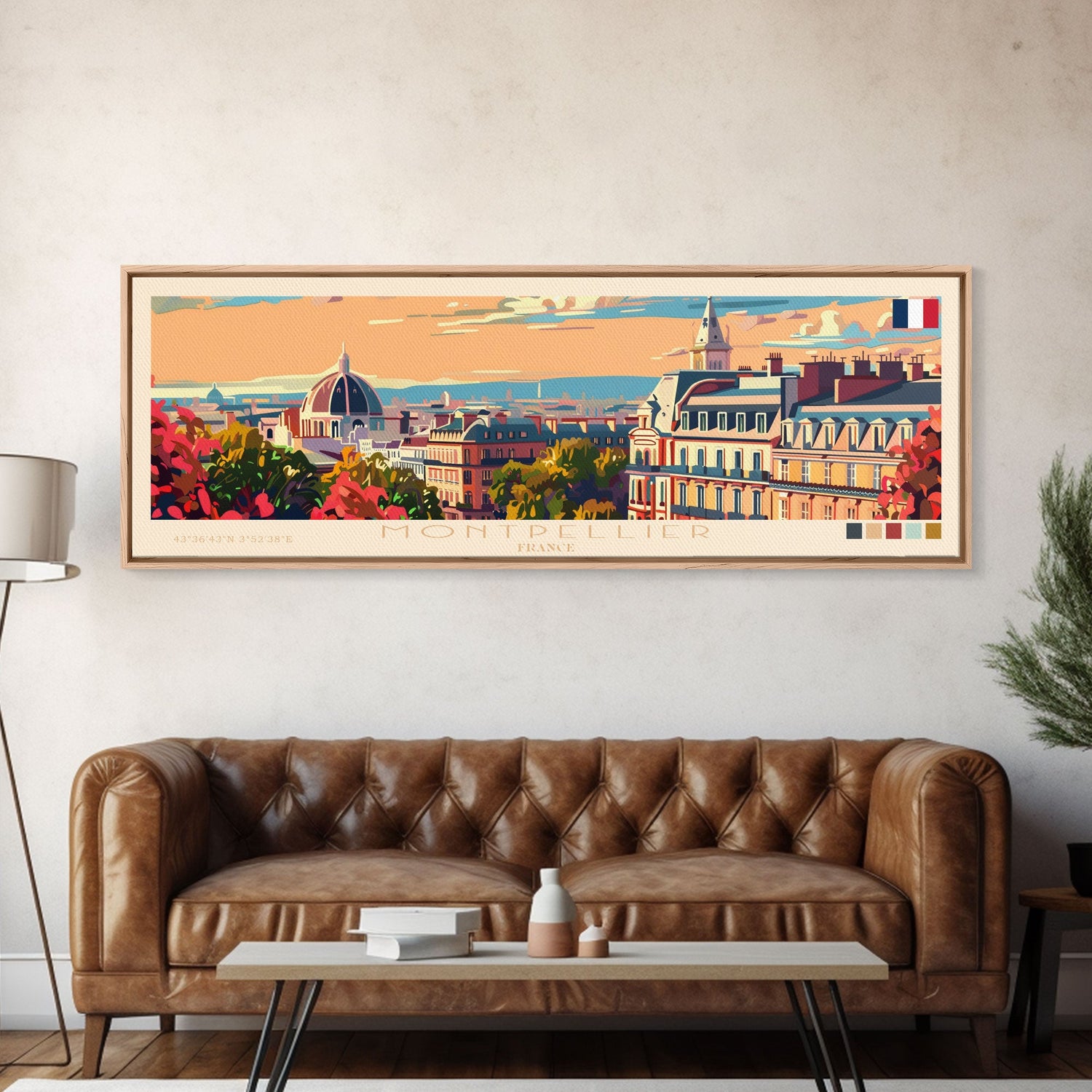 Montpellier France Wall Art, Panoramic Travel Poster, Panoramic Framed Canvas Print, City Wall Art, Wall Hanging Home Decor, Travel Art