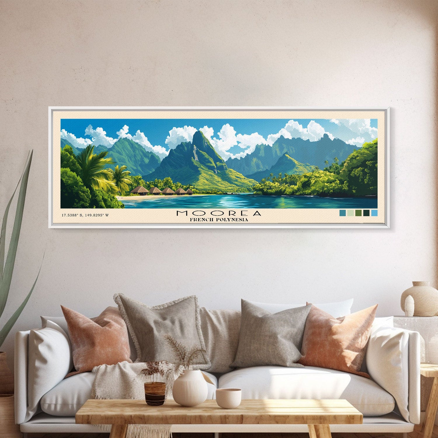 Moorea, French Polynesia Panoramic Print, Vacation Gift, French Polynesia Wall Art, Beach Painting, Beach Decor, Large Wall Art, Wood Frame Art