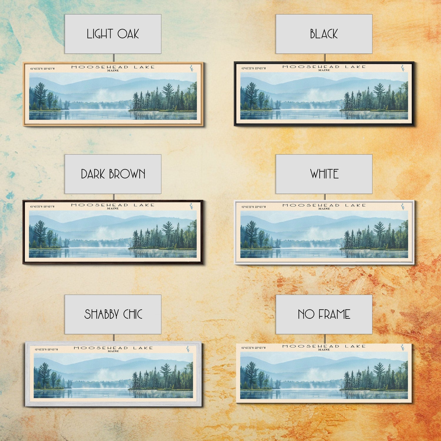 Moosehead Lake Framed Canvas Print, Lake House Decor, Panoramic Wall Art, Travel Poster, Beautiful Landscape Painting, Living Room Decor