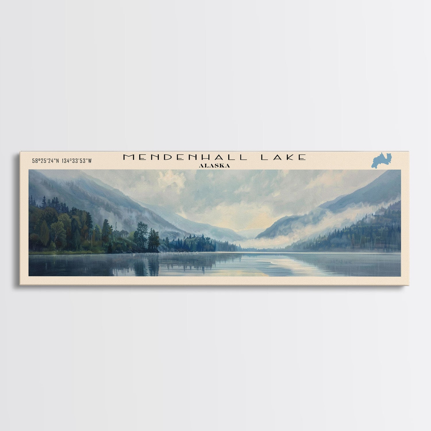 Mosquito Lake Framed Canvas Print, Lake House Decor, Panoramic Wall Art, Travel Poster, Scenic Landscape Painting, Living Room Decor