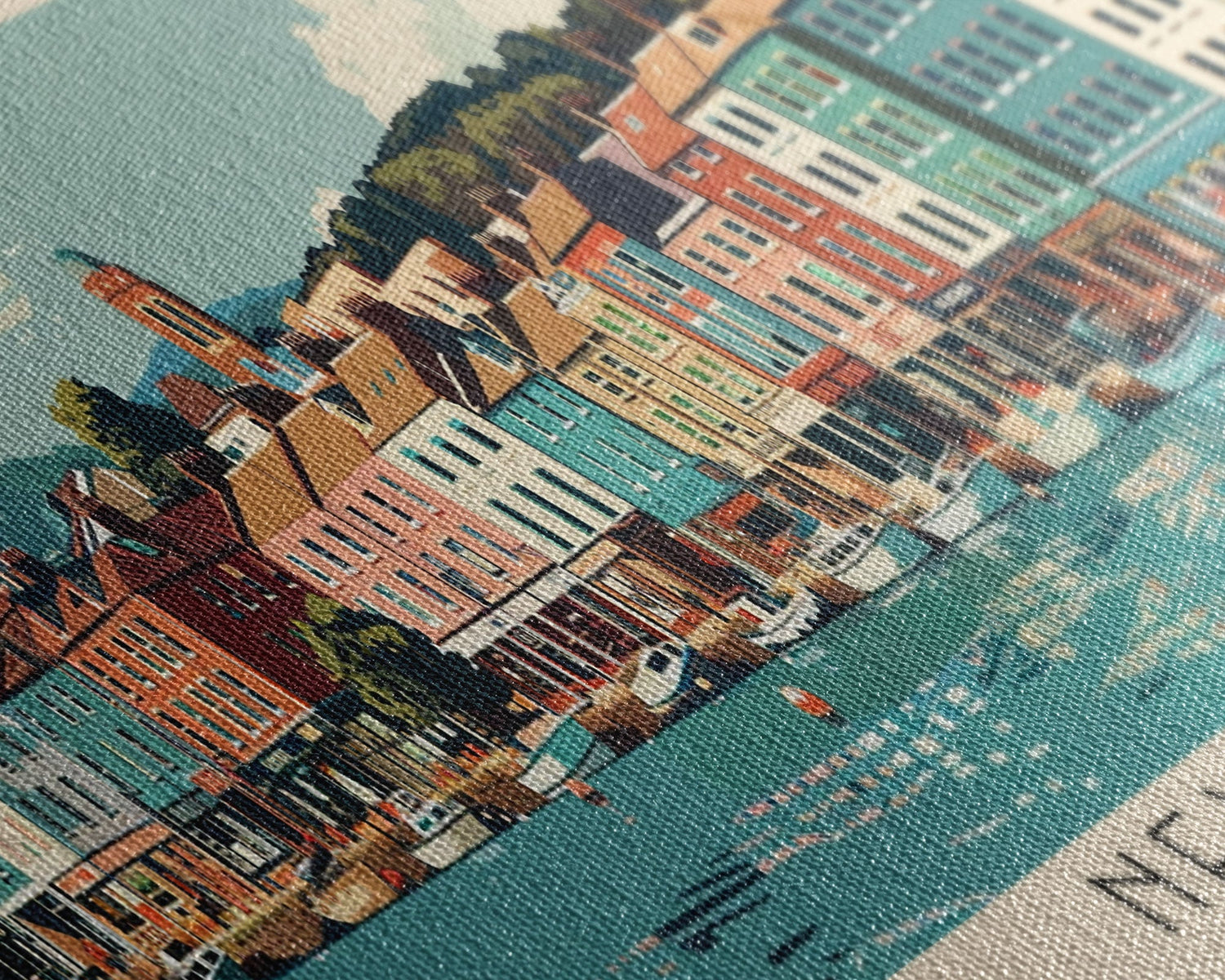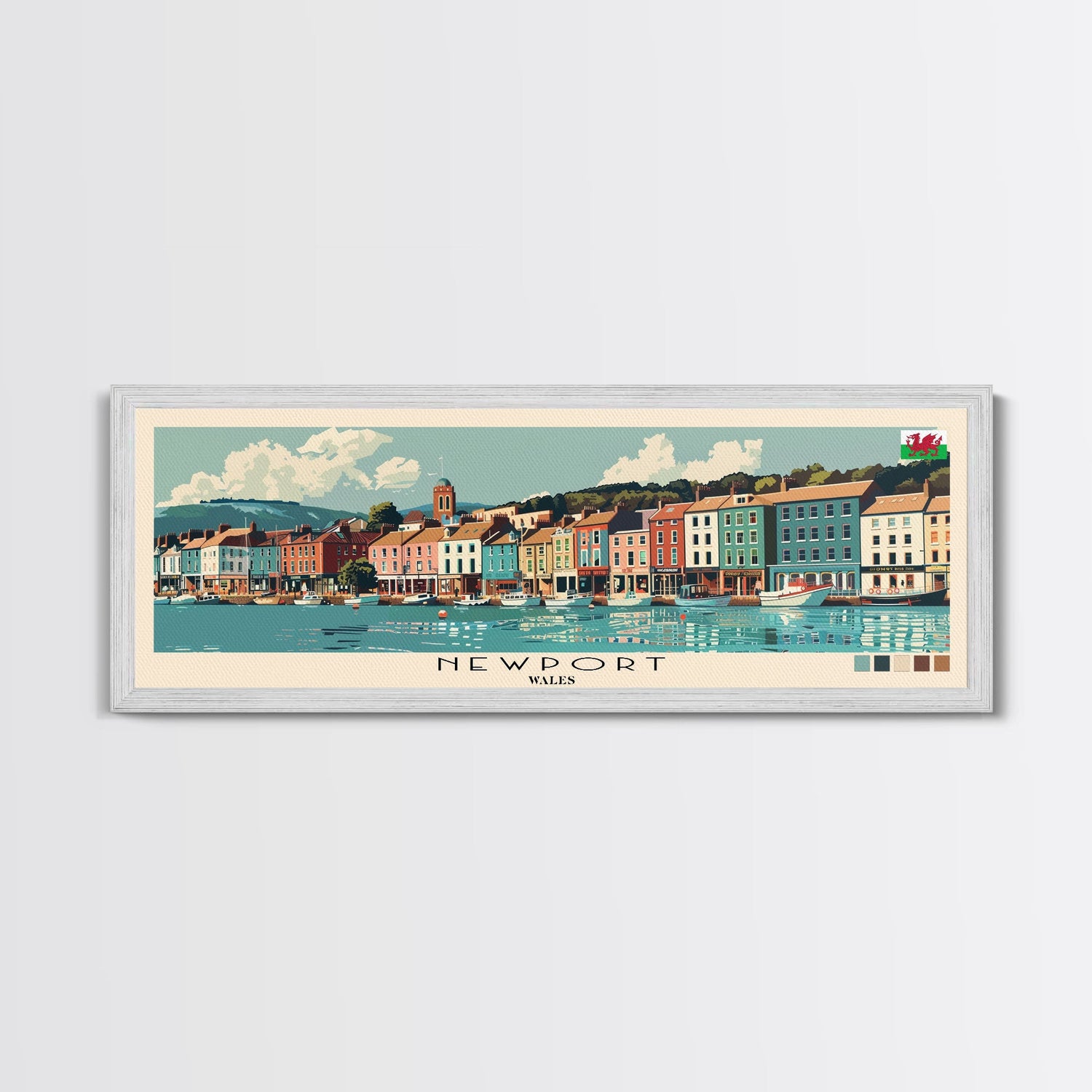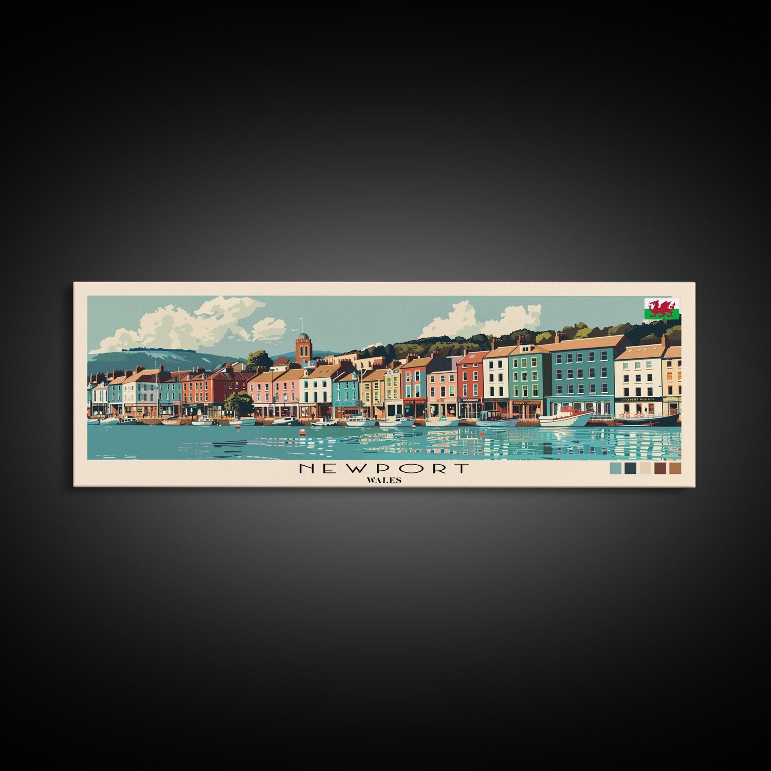 Newport, Wales Panoramic Canvas Print, Newport, Wales Painting, Wales Art, Newport Travel Poster, Travel Art, Housewarming Gift