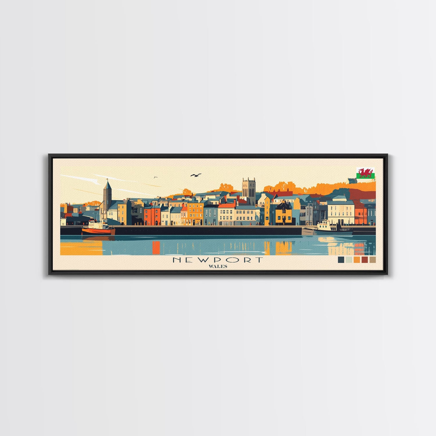 Newport, Wales Panoramic Travel Poster Canvas Print, Newport, Wales Painting, Wales Art, Newport Travel Art, Guest Room Painting