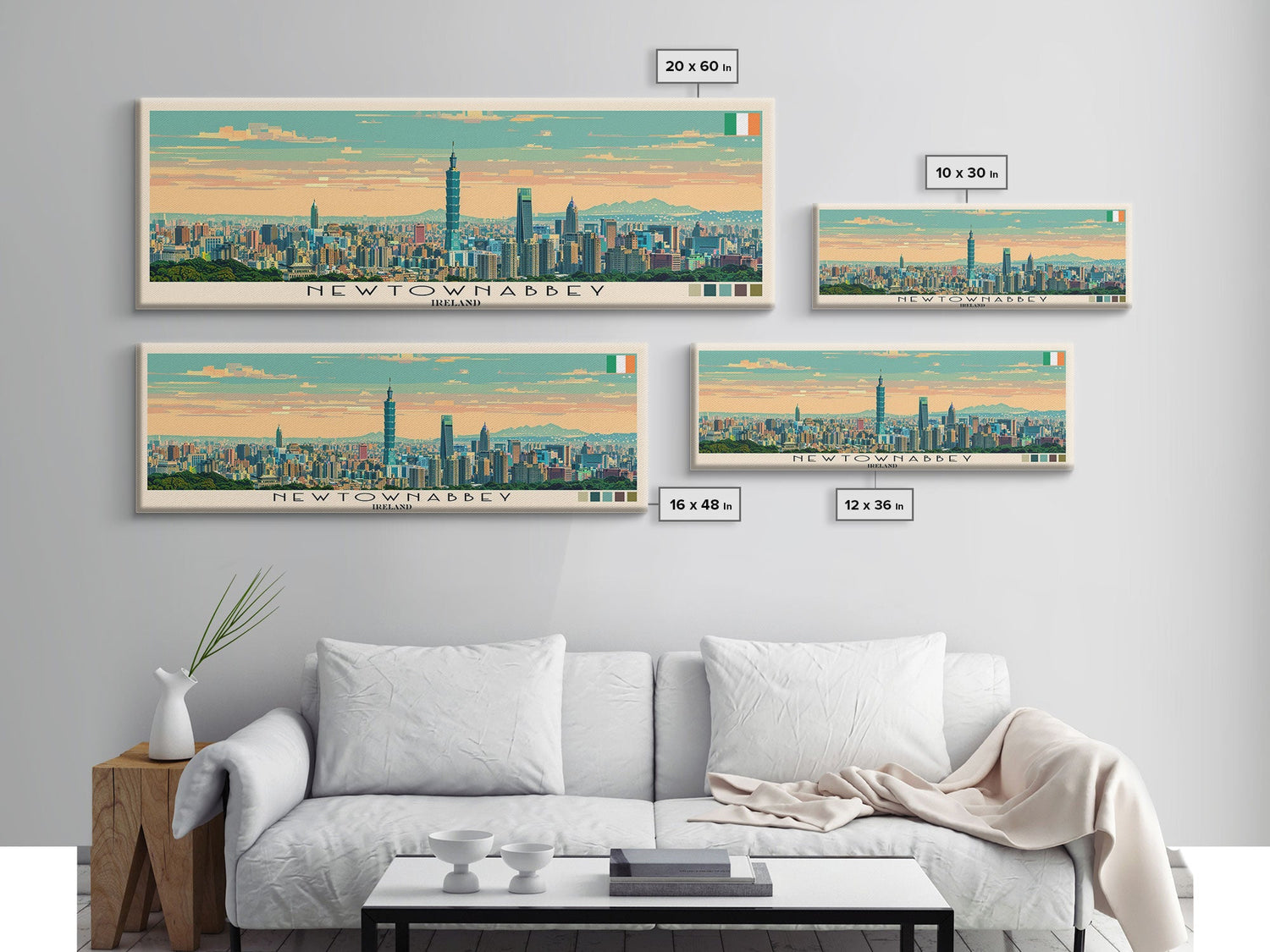 Newtownabbey, Ireland Panoramic Canvas Print, Newtownabbey, Ireland Painting, Ireland Art, Newtownabbey Travel Poster, Travel Art, Guest Room Painting