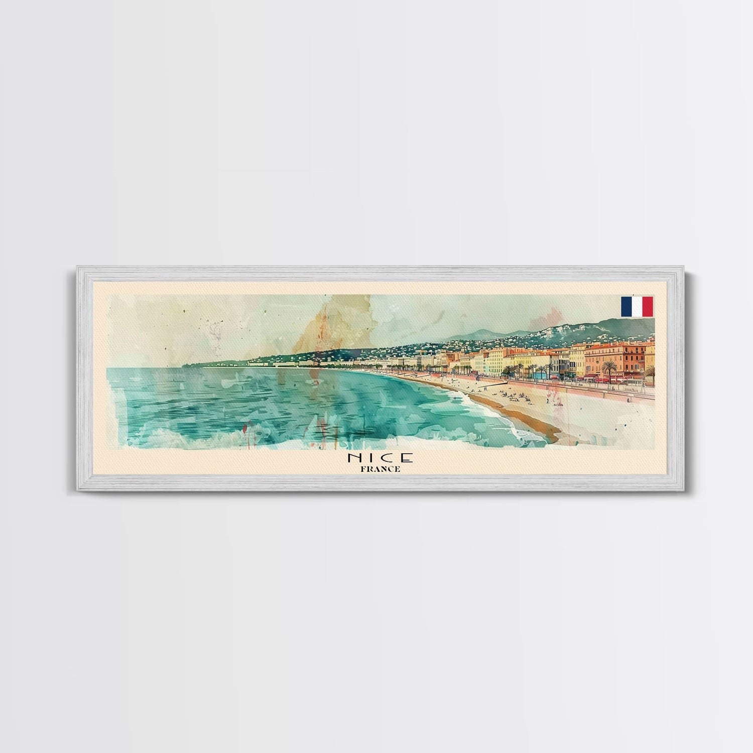 Nice France Travel Art, City Art, Framed Canvas Print or Metal Wall Art, Europe Travel Poster, Panoramic Wall Art, Extra Wide Wall Art
