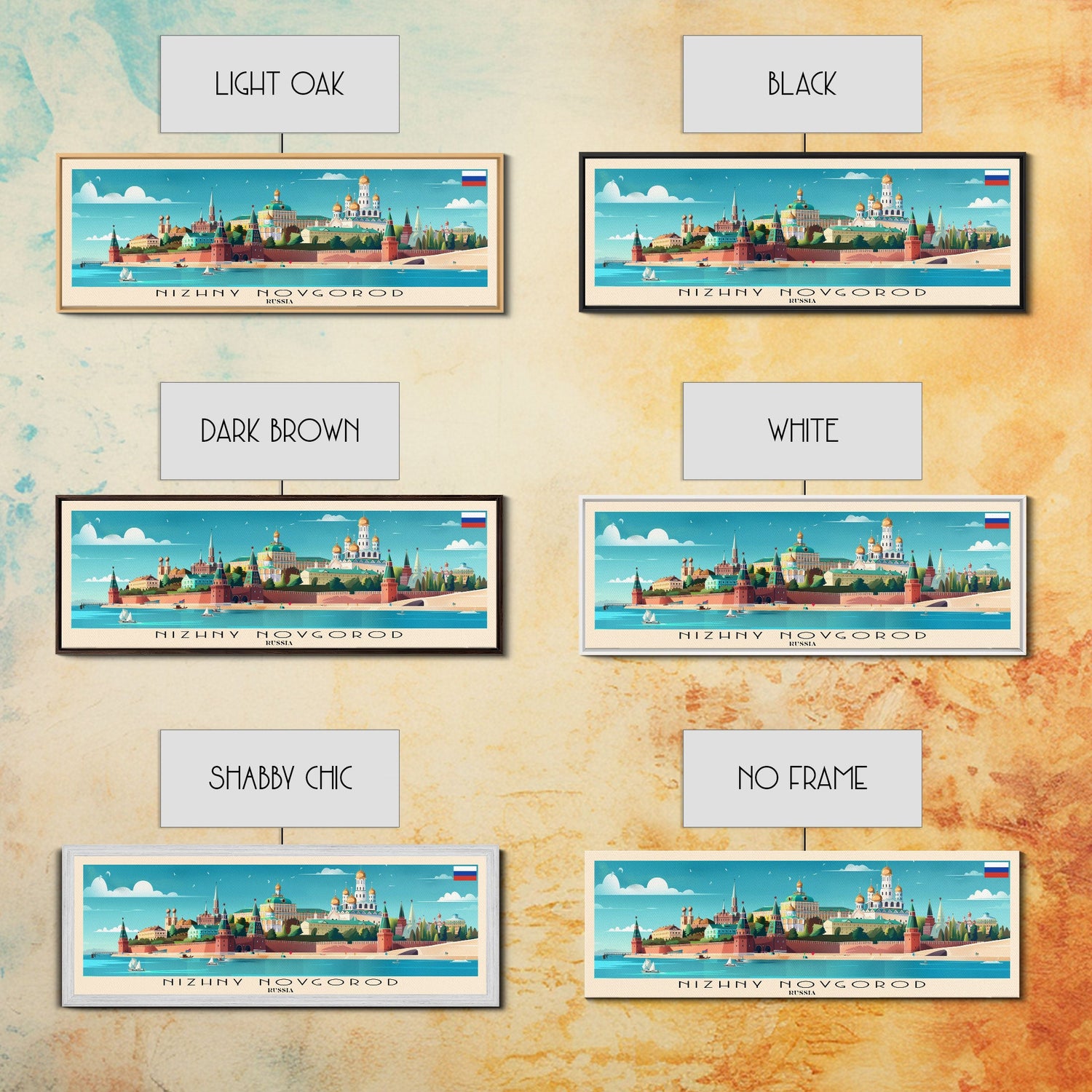 Nizhny Novgorod Panoramic Travel Poster, Framed Canvas Print or Metal Wall Art, Travel Art, Home Decor, Panoramic Painting, Midcentury Art