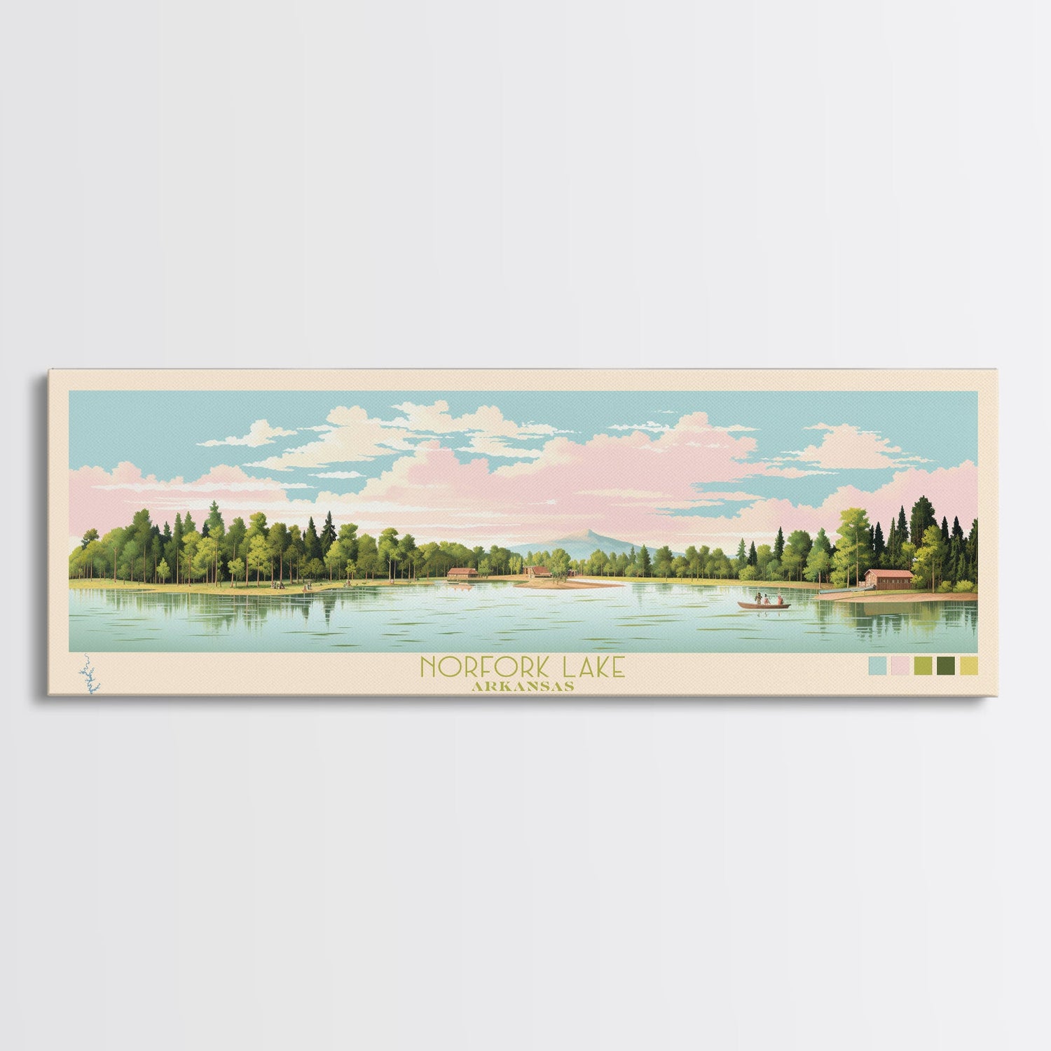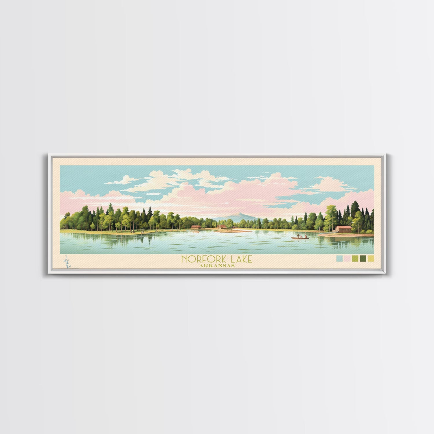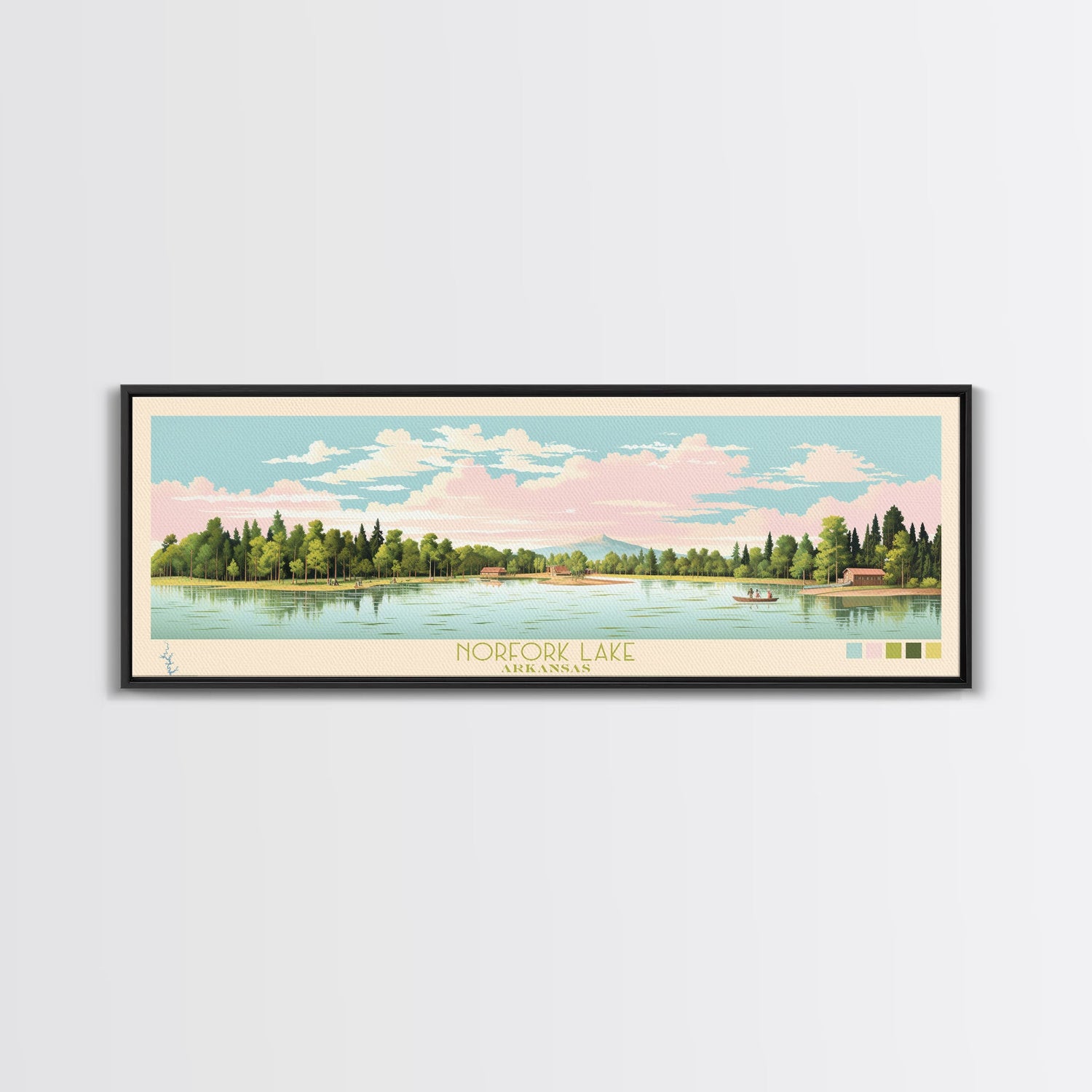 Norfork Lake, Arkansas Framed Canvas Print, Panoramic Wall Art, Midcentury Modern, Pop Art, Home Decor, Travel Poster, Bedroom Art