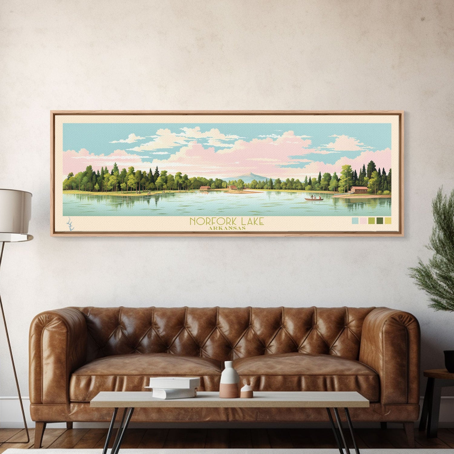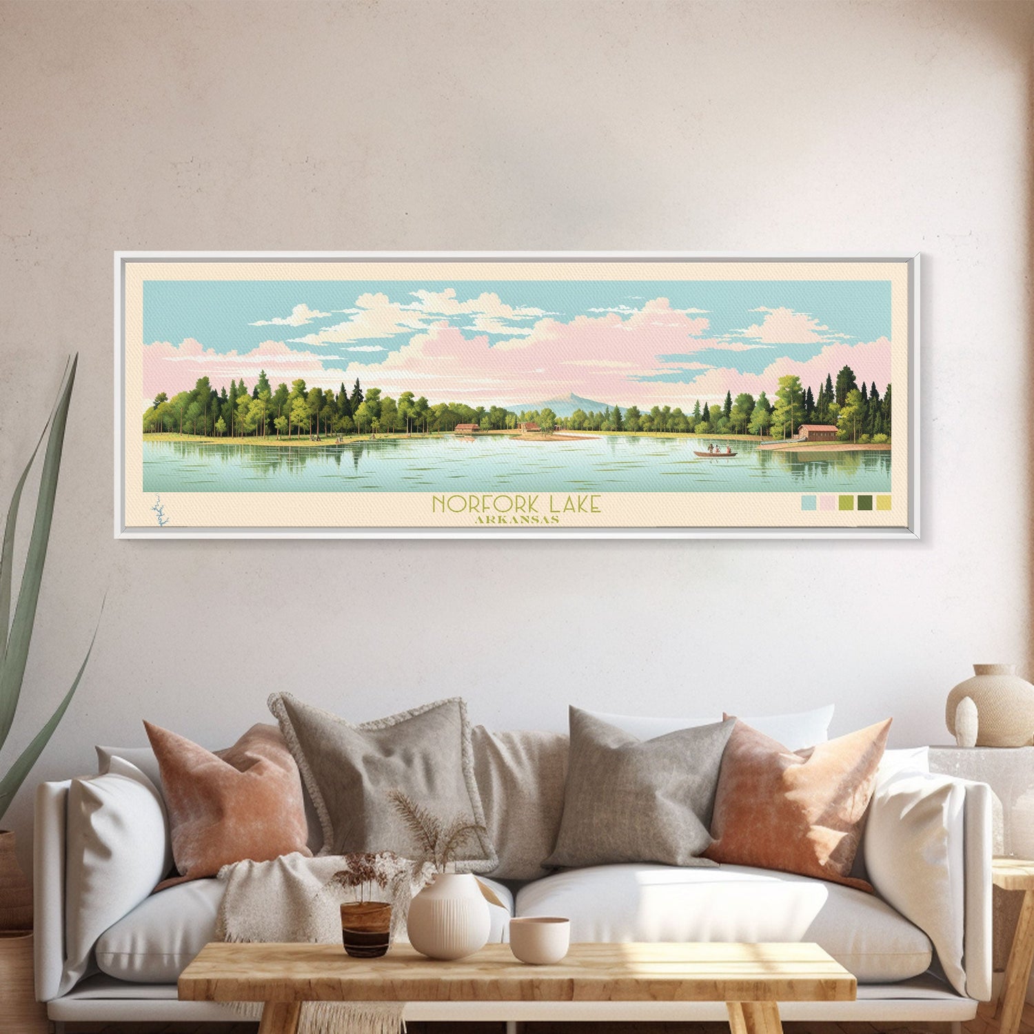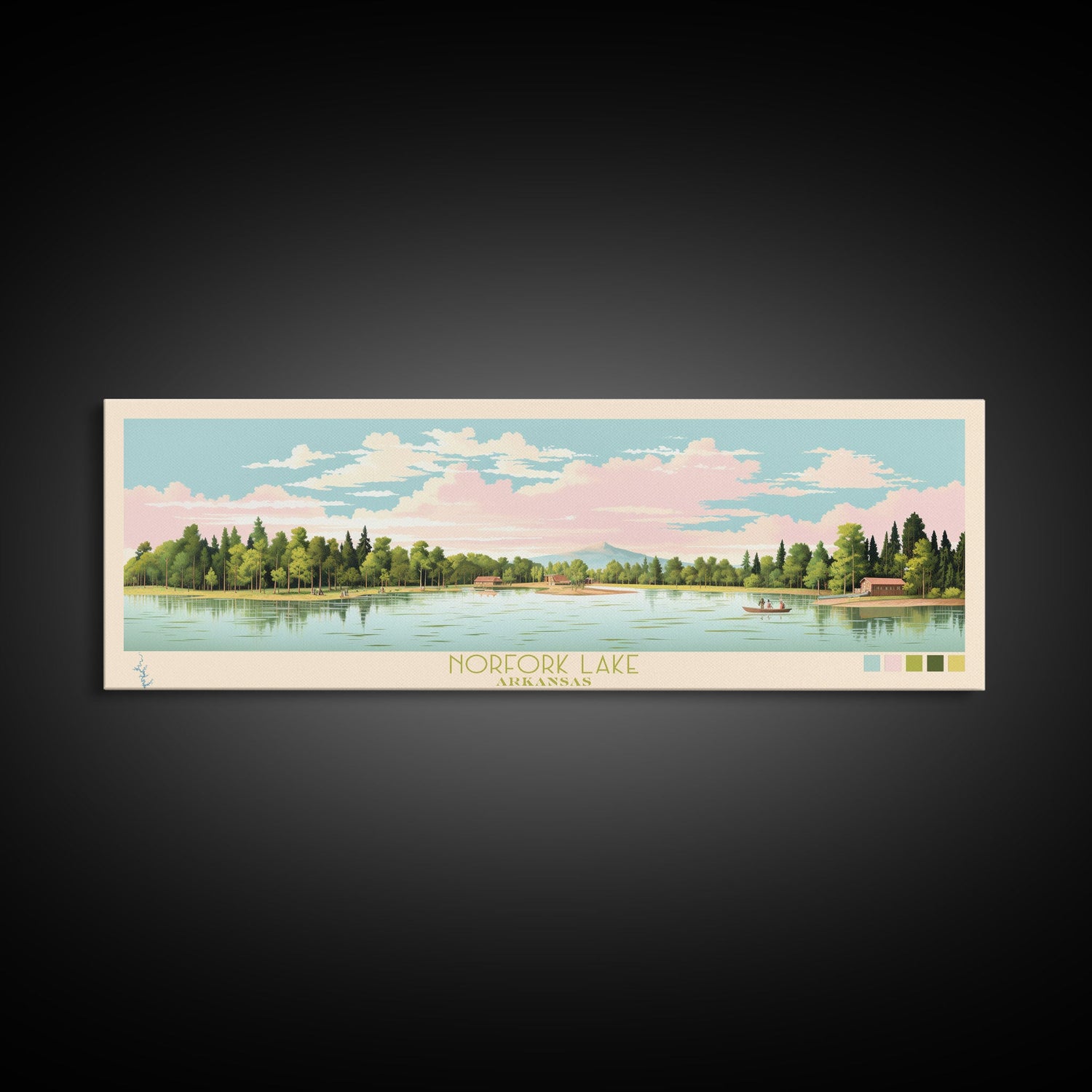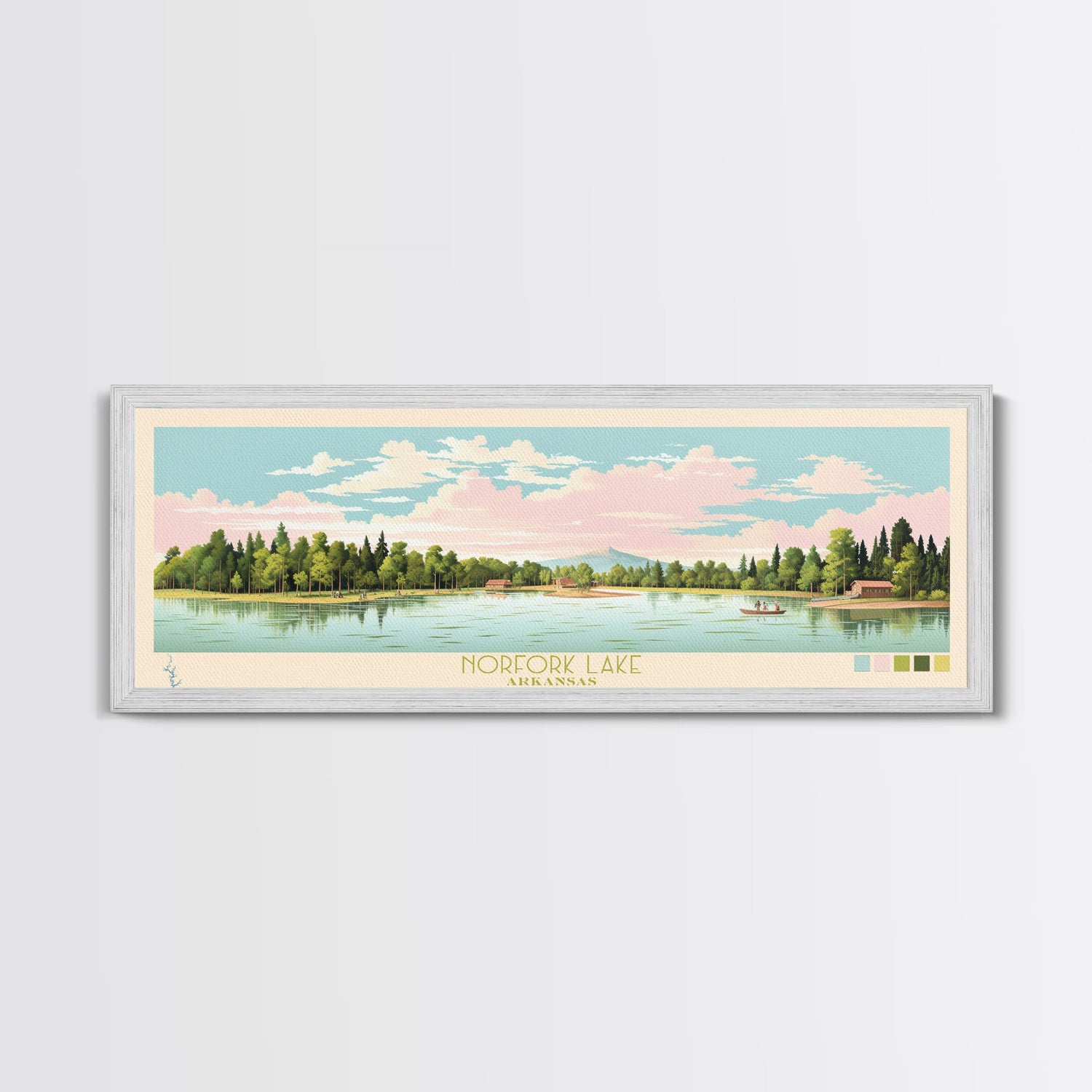 Norfork Lake, Arkansas Framed Canvas Print, Panoramic Wall Art, Midcentury Modern, Pop Art, Home Decor, Travel Poster, Bedroom Art