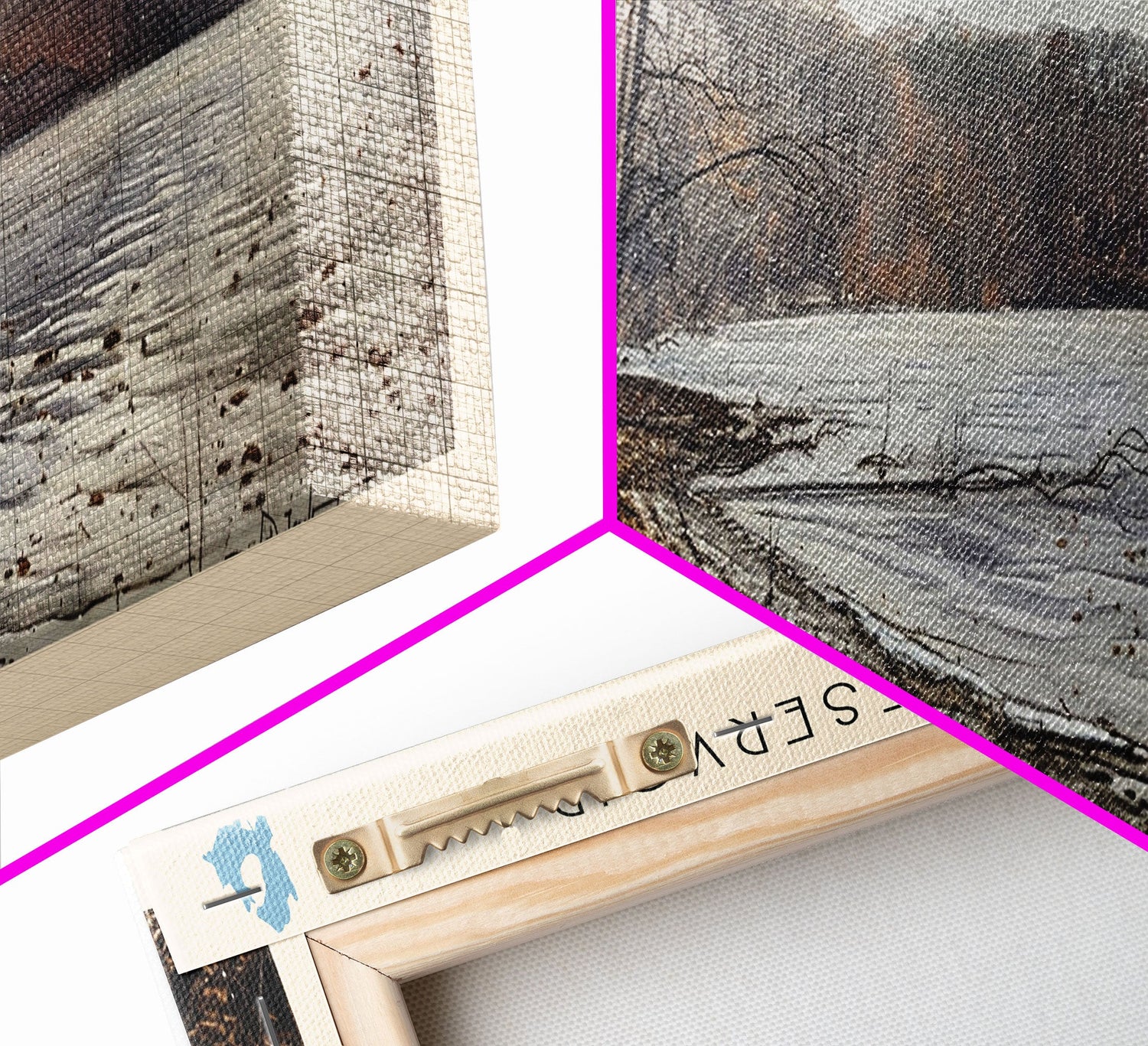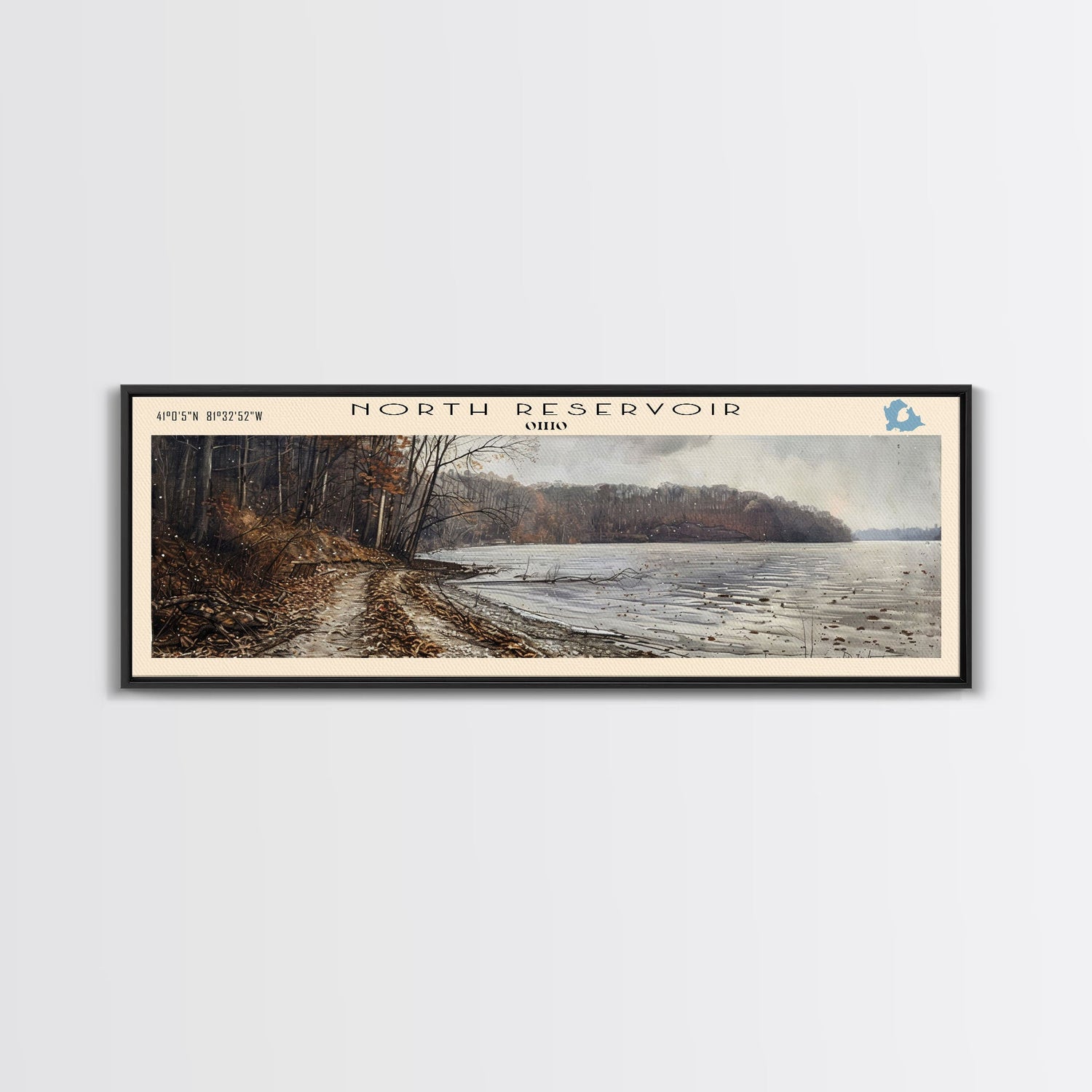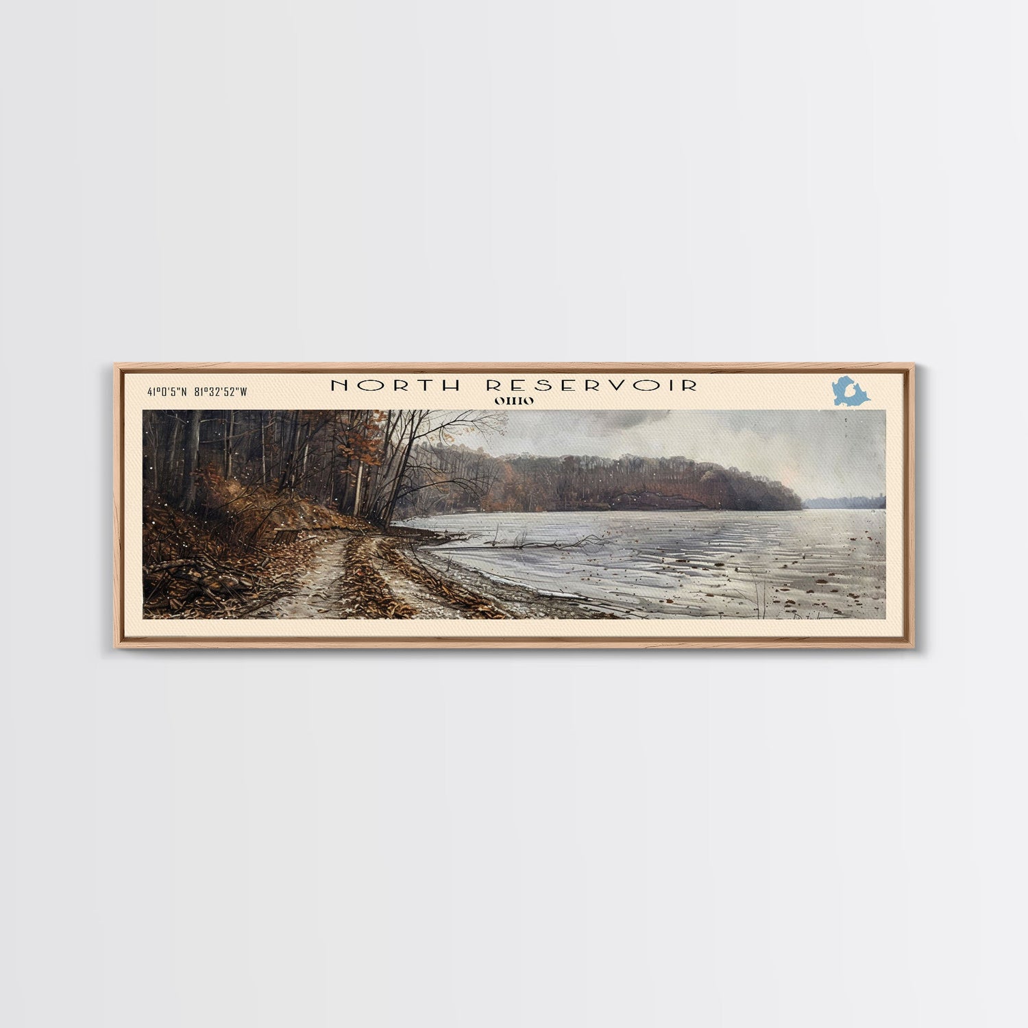 North Reservoir Ohio Framed Canvas Print, Lake House Decor, Panoramic Wall Art, Travel Poster, Landscape Painting, Contemporary Art