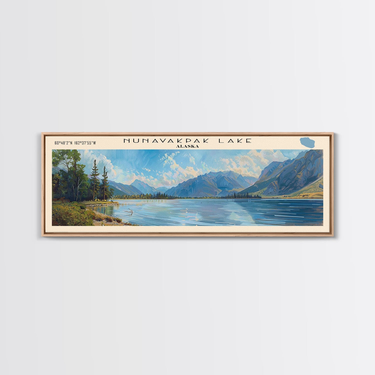 Nunavakpak Lake Framed Canvas Print, Lake House Decor, Panoramic Wall Art, Travel Poster, Scenic Landscape Painting, Contemporary Art