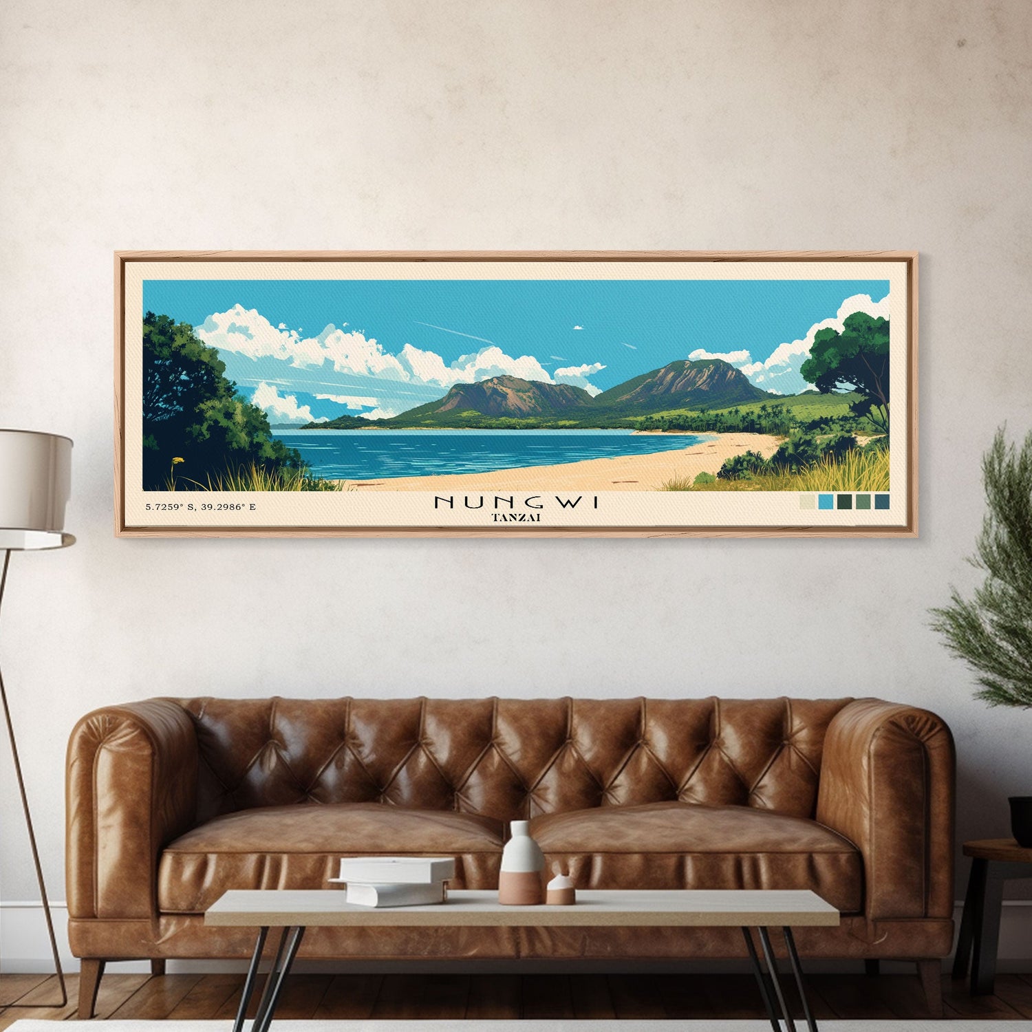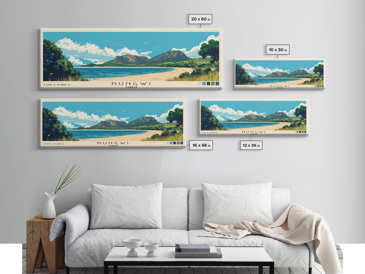 Nungwi, Tanzai Panoramic Print, Vacation Gift, Tanzai Wall Art, Beach Painting, Beach Decor, Large Wall Art, Wood Frame Art