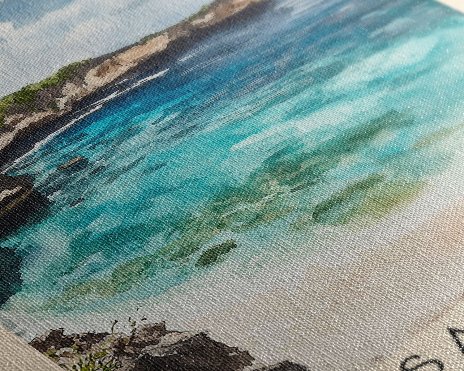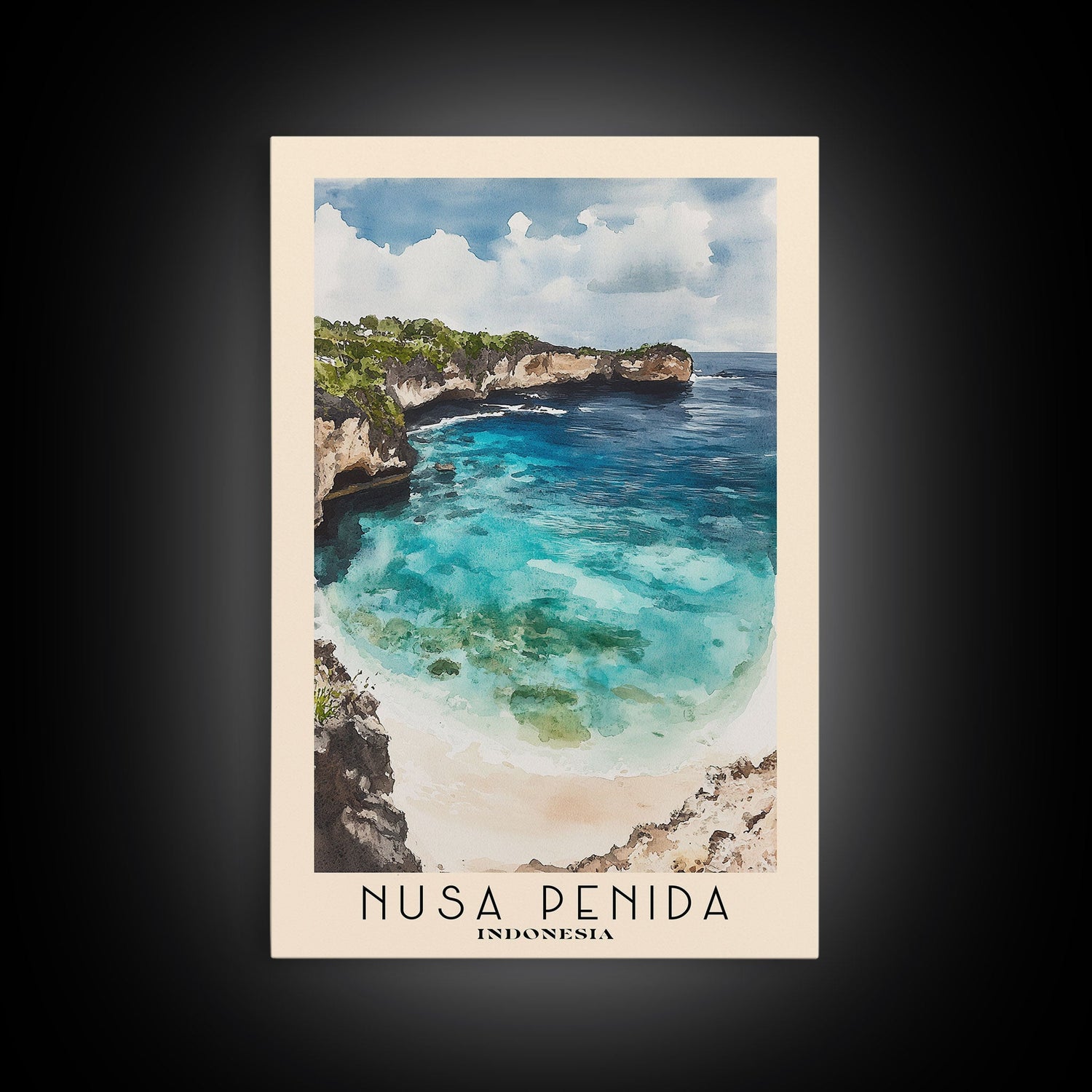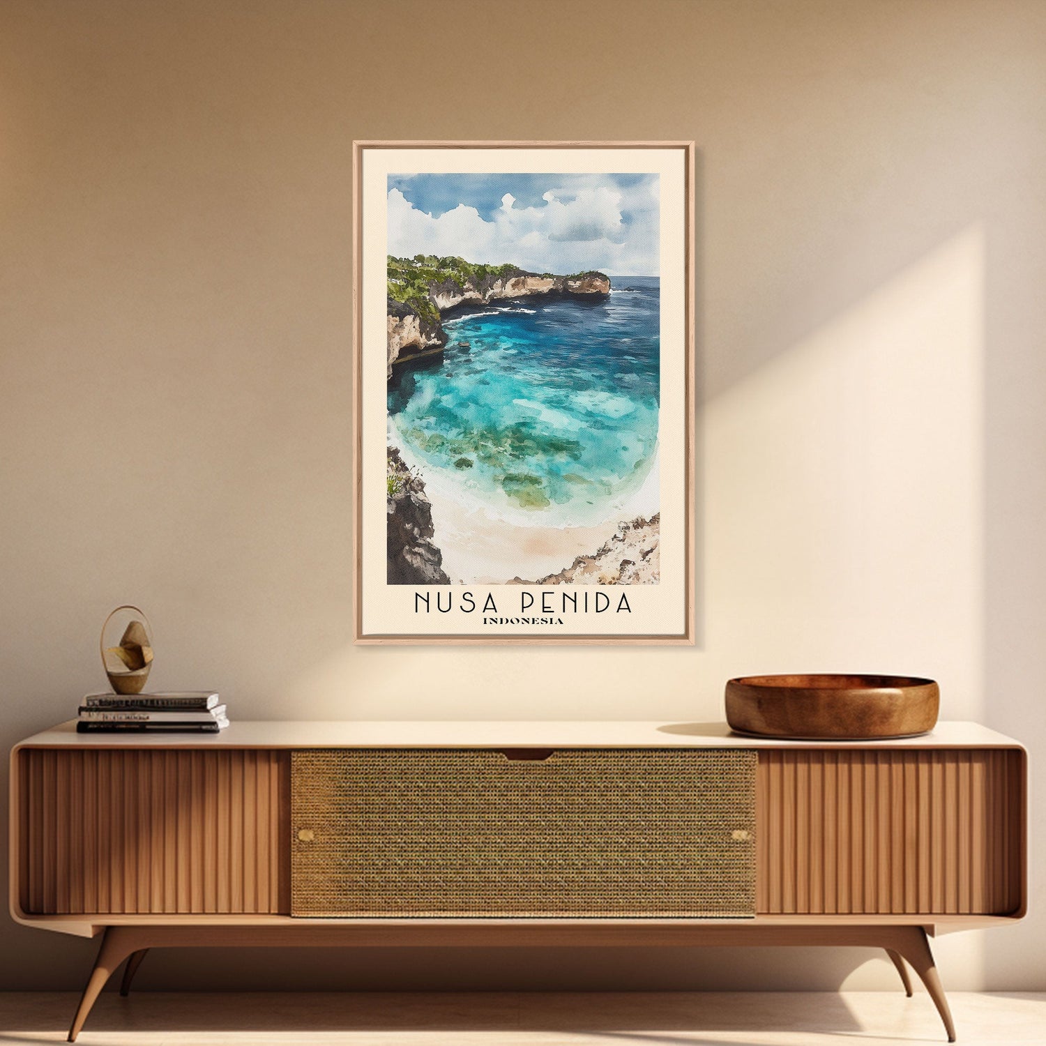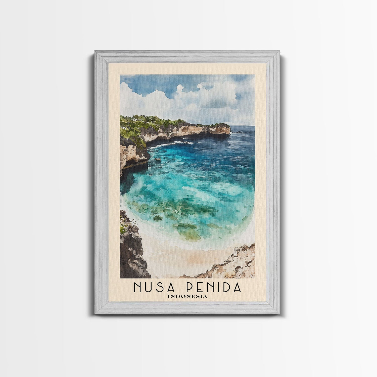 Nusa Penida, Indonesia Watercolor Beach Print, Vacation Gift, Indonesia Wall Art, Framed Canvas Print, Framed Beach Painting