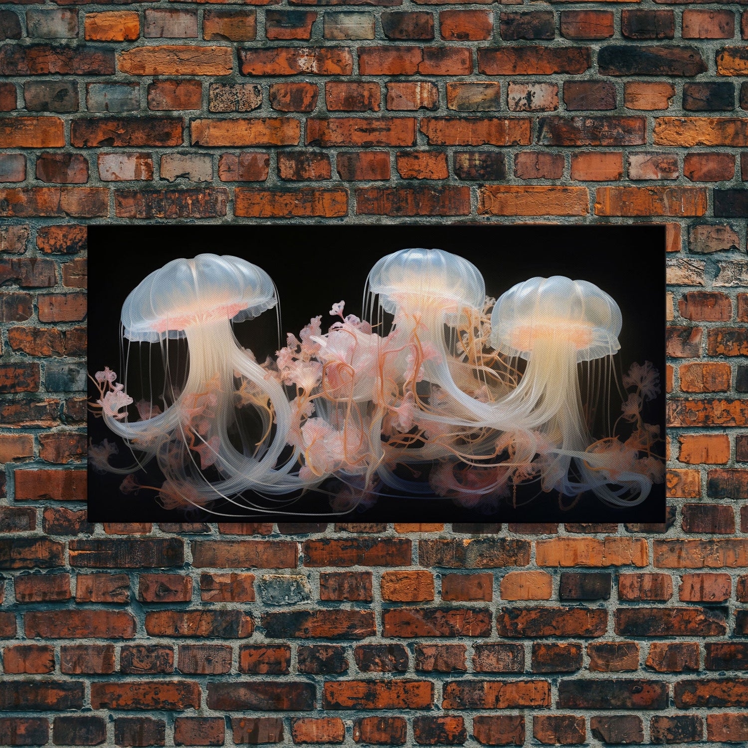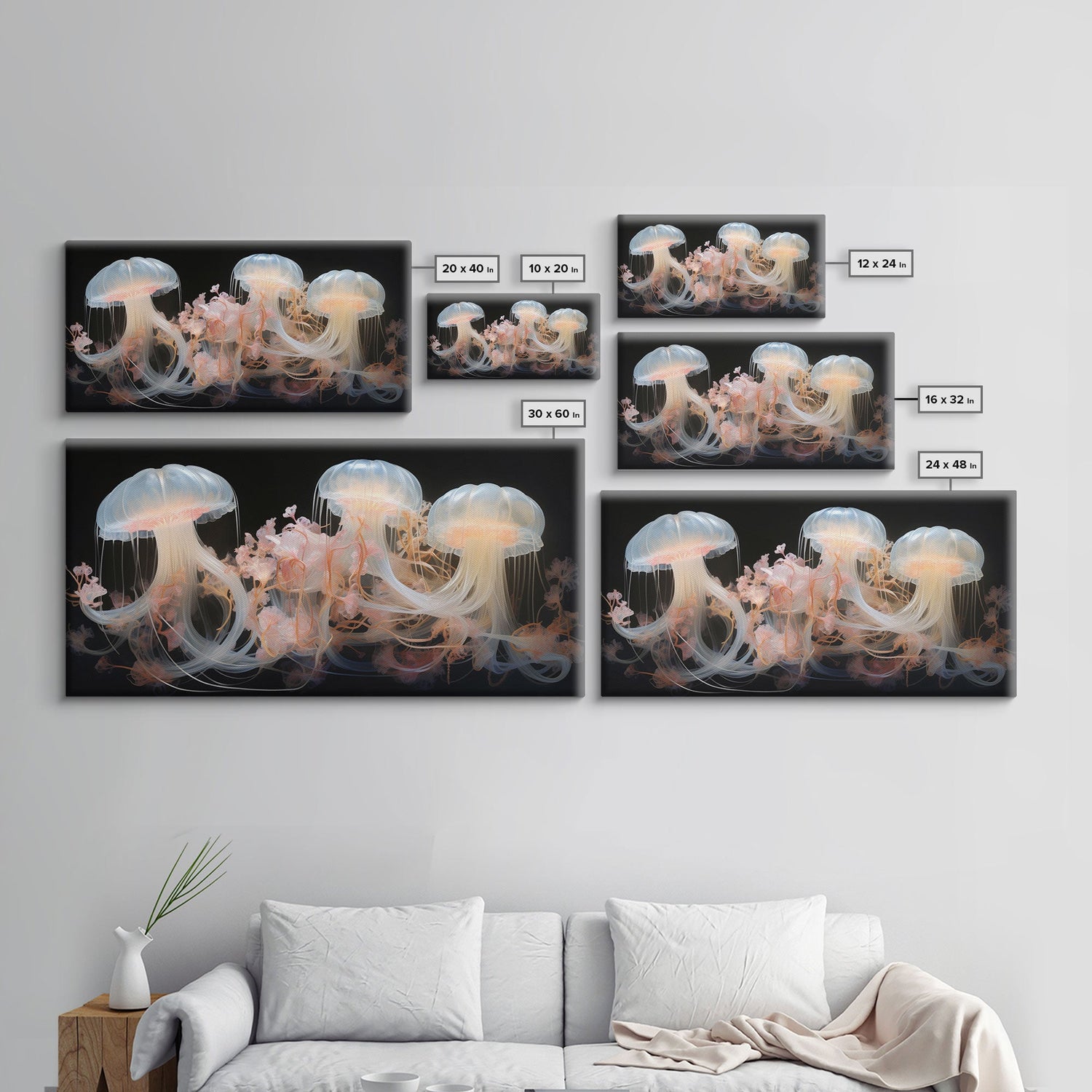 Ocean Wall Art, Jelly Fish Art, Nautical Wall Art, Panoramic Art, Wall Art, Canvas Art, Landscape Art, Gift For Him, Dorm Room Art, Prints