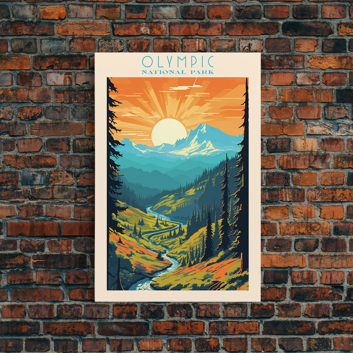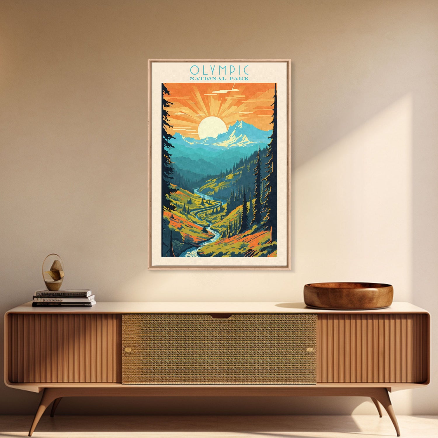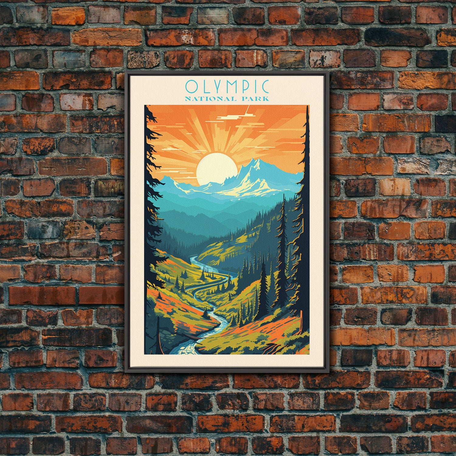 Olympic National Park, Washington Travel Art, National Park Print, Minimalist Travel Art, Midcentury Modern Retro Style Landscape - 8x12 Inches / No Frame - Stretched Canvas Only está agotado y se enviará tan pronto como vuelva a estar disponible.