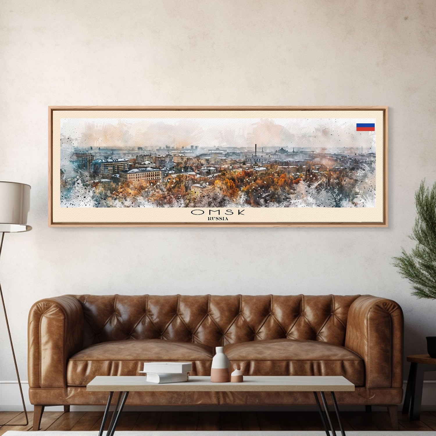 Omsk Russia Wall Art, Panoramic Travel Poster, Panoramic Framed Canvas Print, City Wall Art, Wall Hanging Home Decor, Travel Art