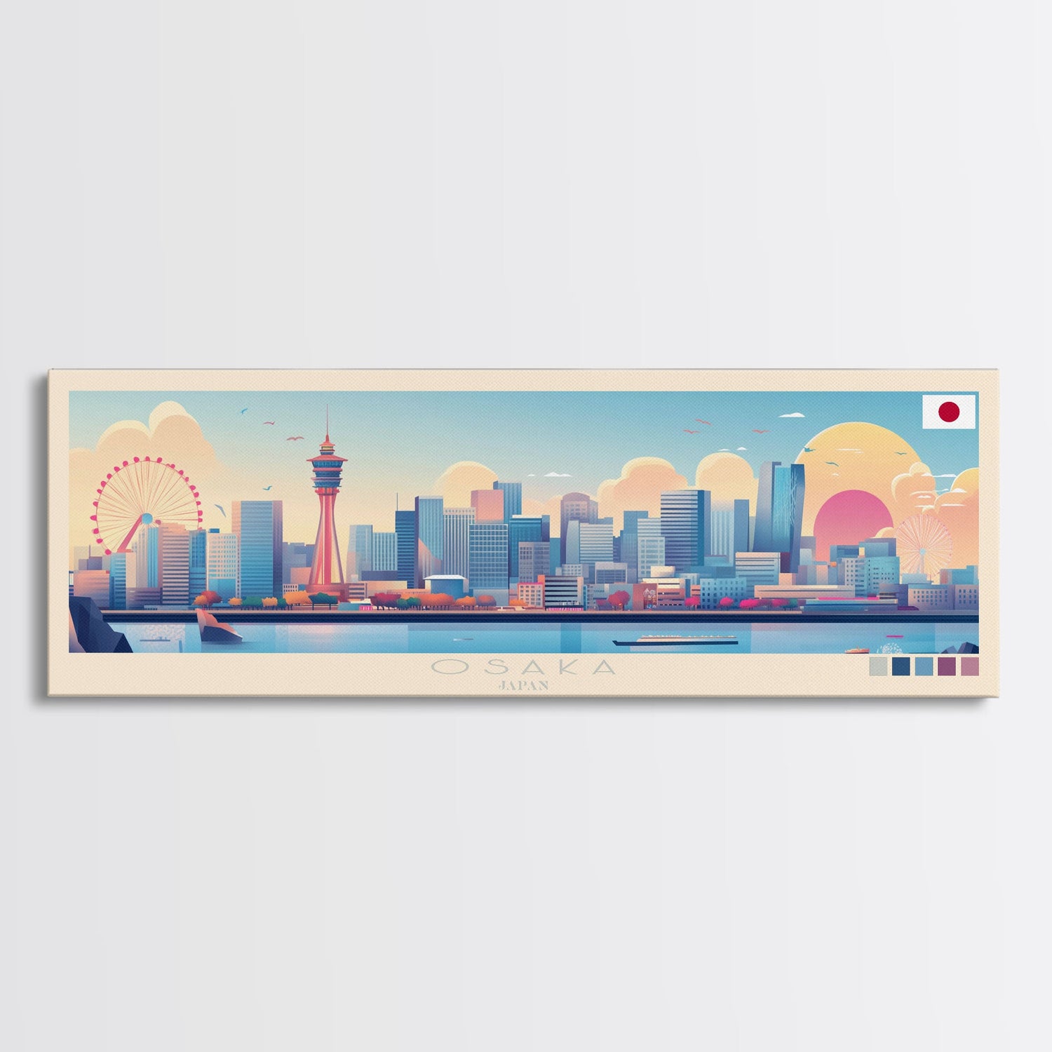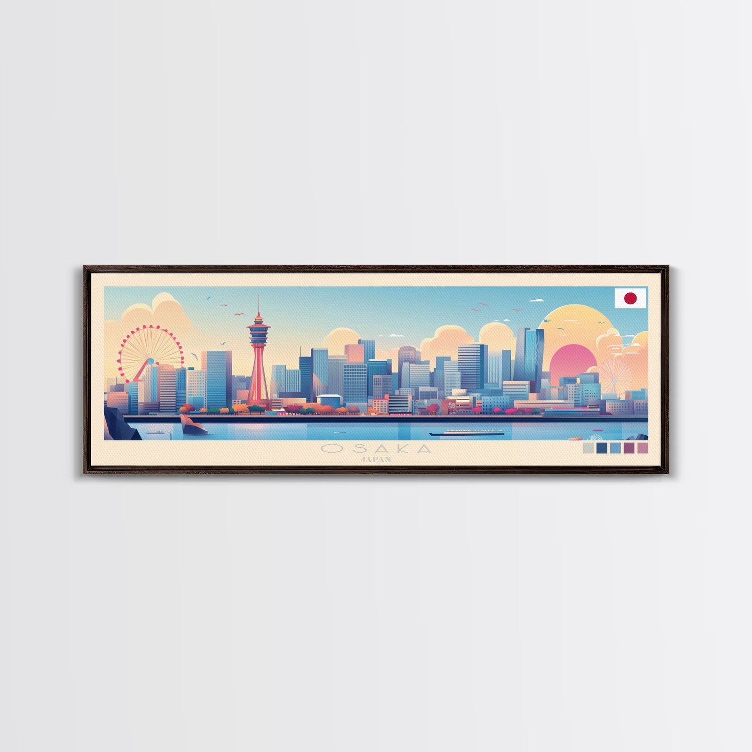 Osaka, Japan Panoramic Travel Poster Canvas Print, Osaka, Japan Painting, Japan Art, Osaka Travel Art, Guest Room Painting