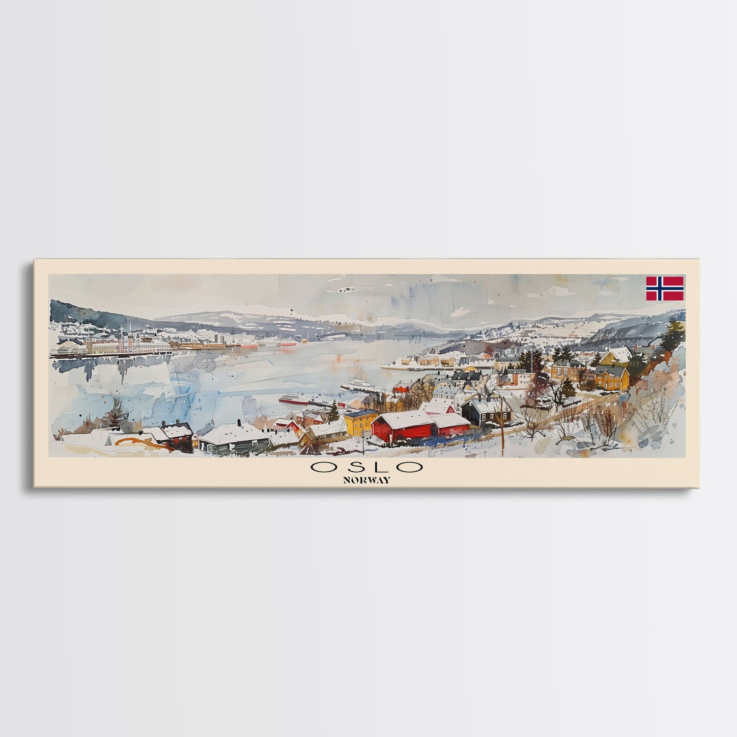 Oslo Norway Travel Art, City Art, Framed Canvas Print or Metal Wall Art, Europe Travel Poster, Panoramic Wall Art, Extra Wide Wall Art