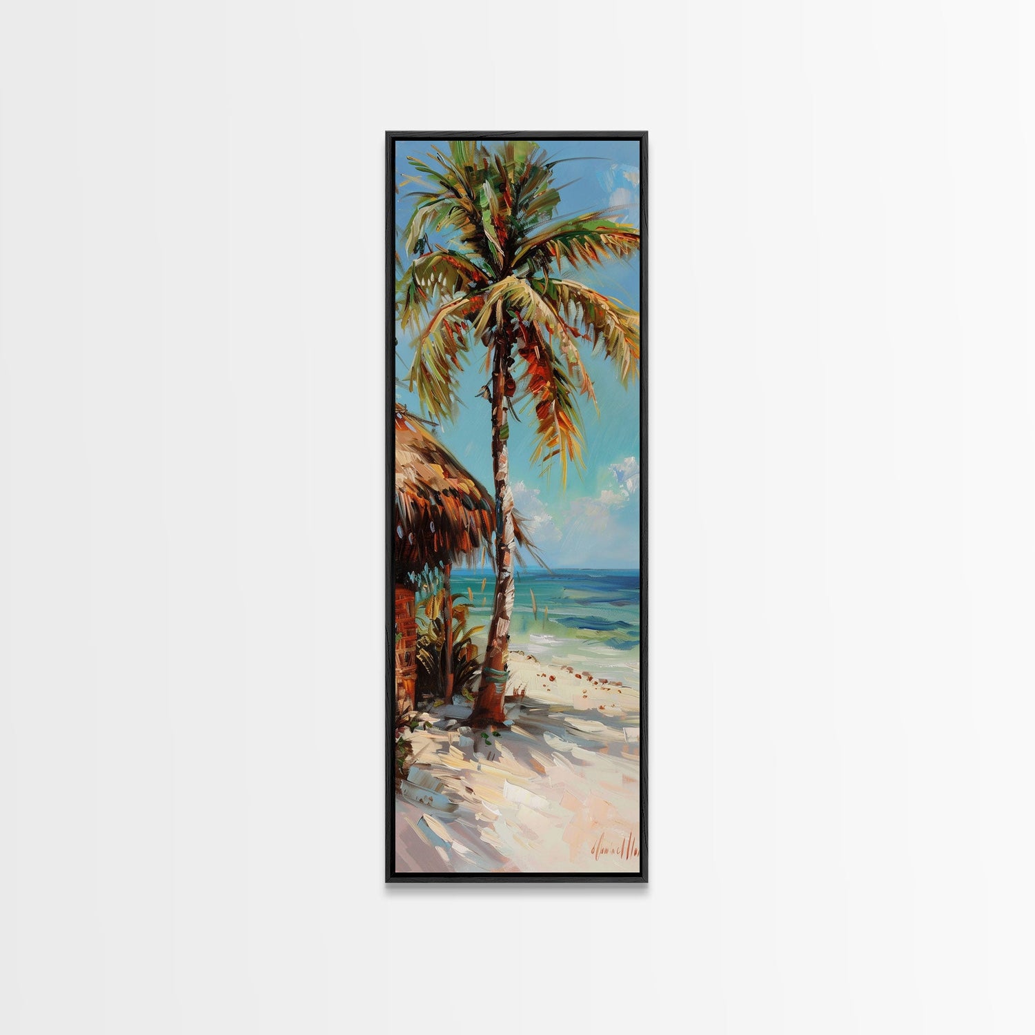 Oversized Vertical Canvas Painting of Beachside Paradise Framed, Coastal Wall Art Framed, Beach House Decor, Housewarming Gift, Beach Art