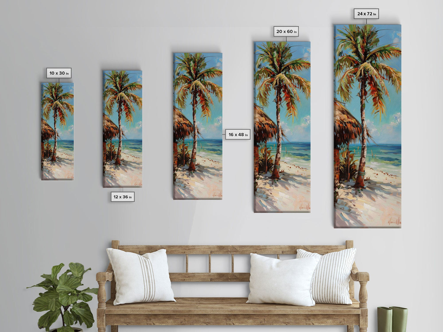 Oversized Vertical Canvas Painting of Beachside Paradise Framed, Coastal Wall Art Framed, Beach House Decor, Housewarming Gift, Beach Art - 10x30 Inches / No Frame - Stretched Canvas Only está agotado y se enviará tan pronto como vuelva a estar disponible.