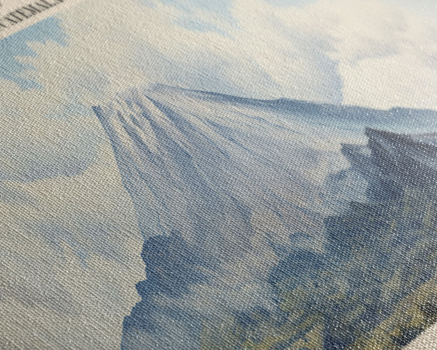 Most of our canvases are made in the USA, with the exception of canvases ordered with the light oak unstained frames, and any large canvases (24x48, 30x60, 16x48 and 20x60) ordered WITH a frame. These are temporarily made in and shipped from Europe, while we try to find a more consistent supplier in the USA.