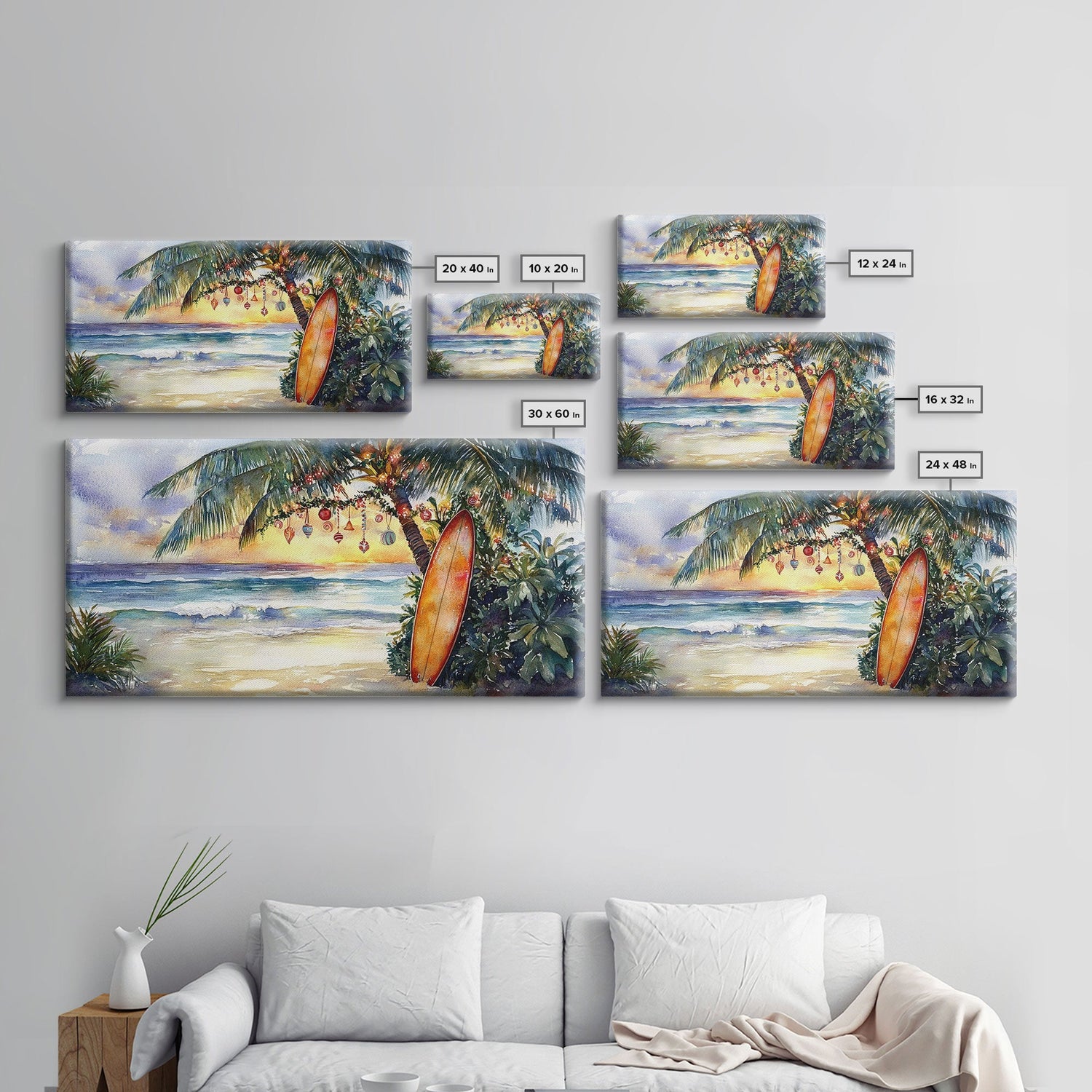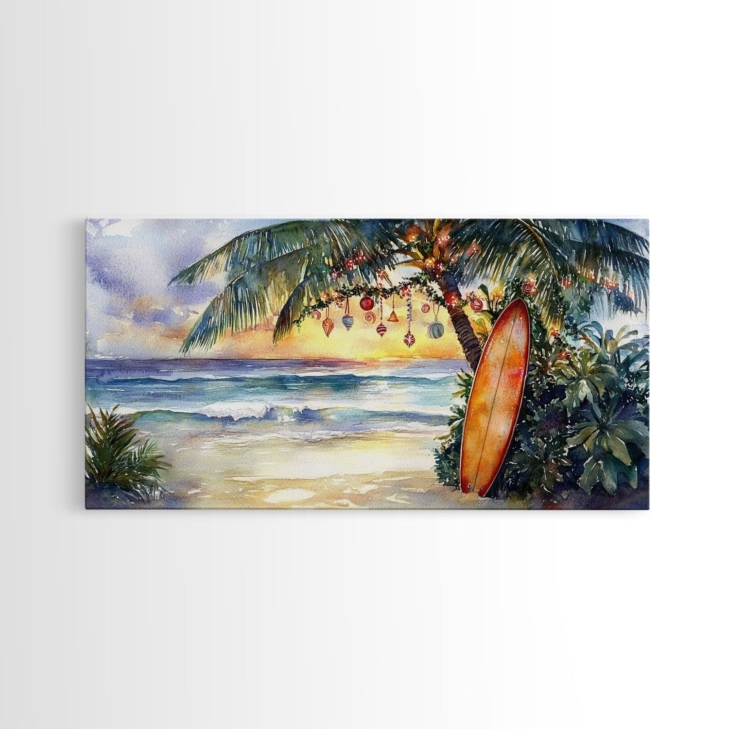 Palm Tree Decorated for Christmas by the Beach, Canvas Print, Tropical Holiday Art, Coastal Christmas Wall Art, Nautical Christmas Decor - 10x20 Inches / No Frame - Stretched Canvas Only está agotado y se enviará tan pronto como vuelva a estar disponible.