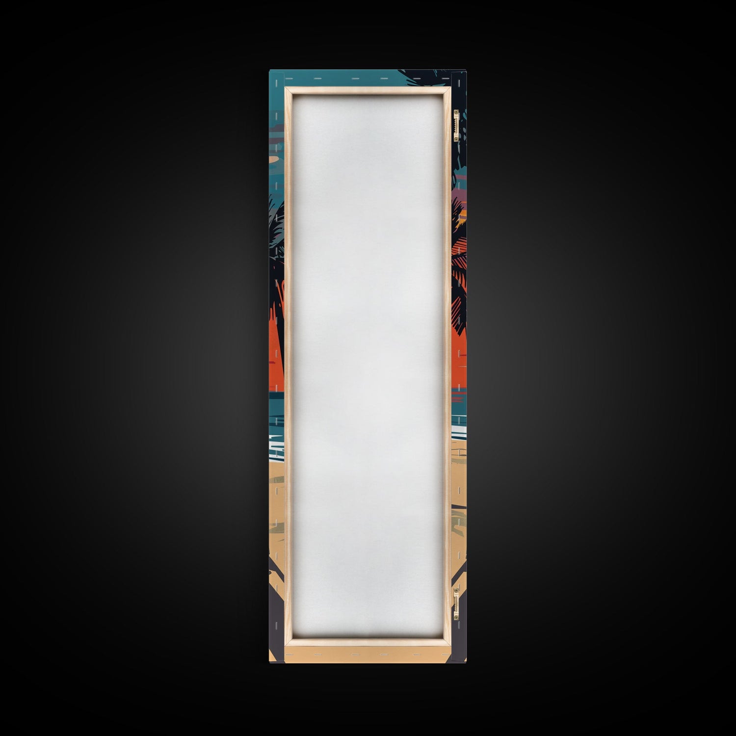 Palm Trees Sunset Midcentury Modern Wall Art - Framed Canvas Print, Boho Art, Skinny Art, Living Room Art, Bedroom Decor, Beach Landscape