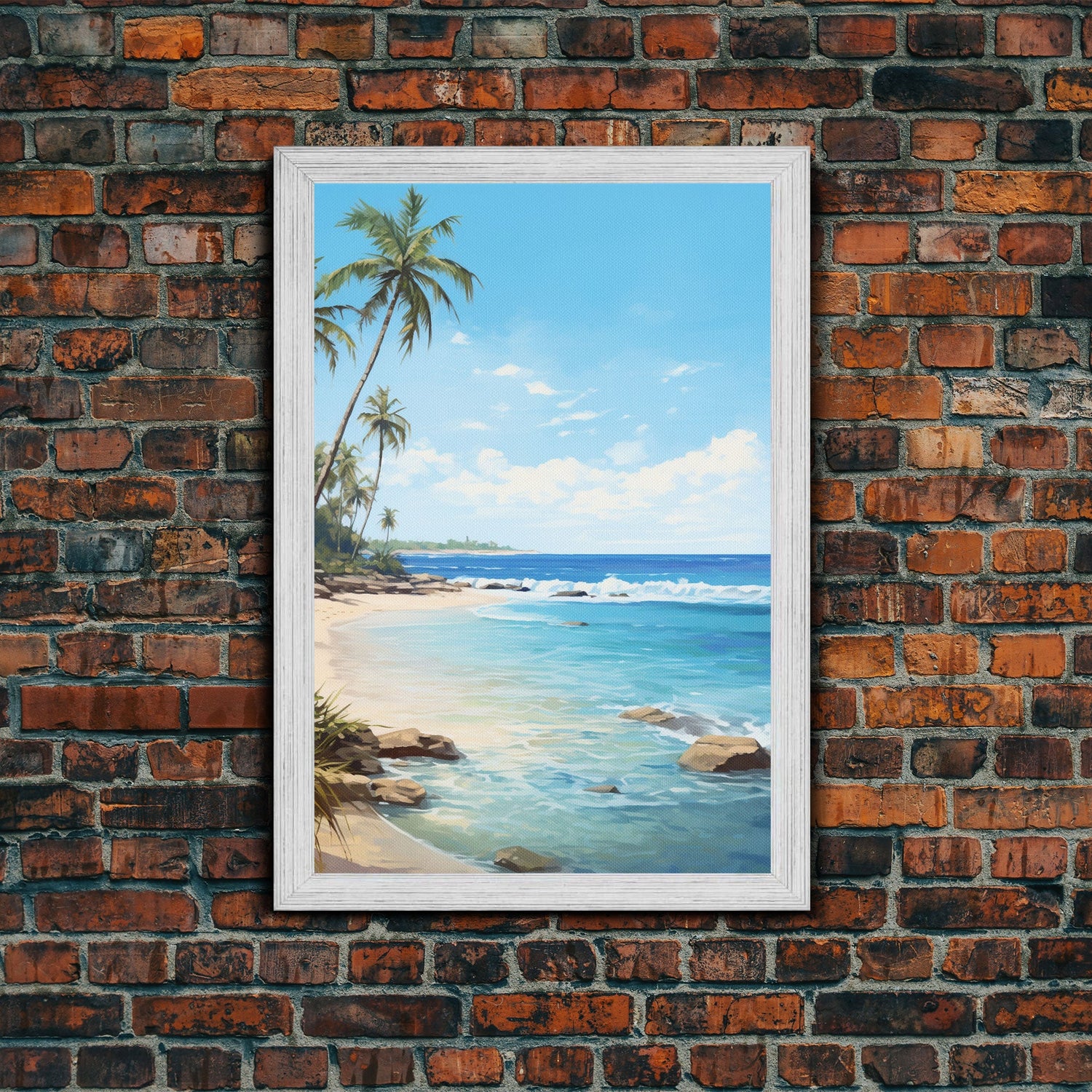 Palm Trees Wall Print, Seashore Wall Art, Beach Wall Art, Tropical Art, Canvas Print, Wall Art, Vertical Art, Bedroom Prints, Travel Print