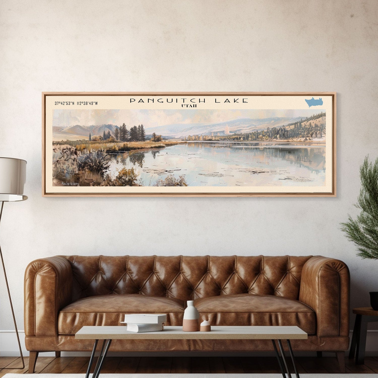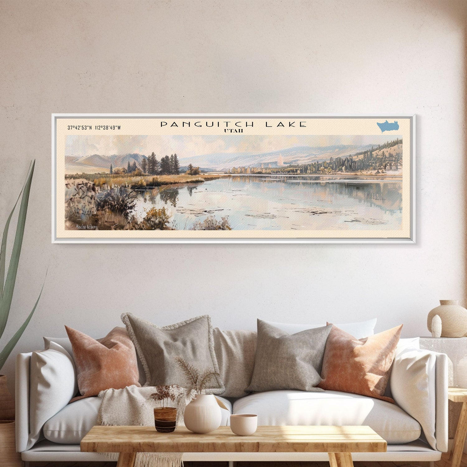 Panguitch Lake Utah Framed Canvas Print, Lake House Decor, Panoramic Wall Art, Travel Poster, Beautiful Landscape Painting, Living Room Decor