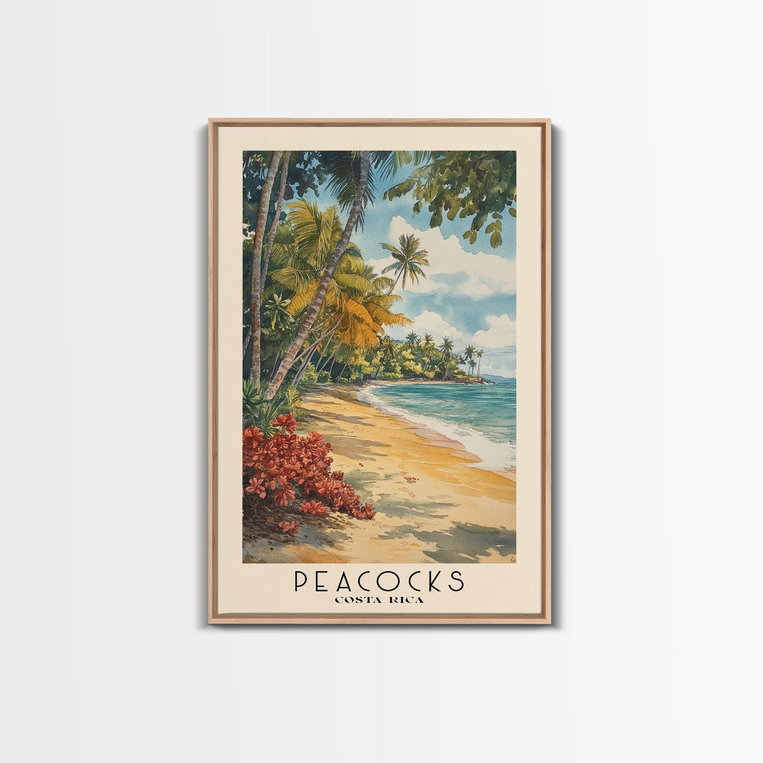 Peacocks, Costa Rica Watercolor Beach Print, Vacation Gift, Costa Rica Wall Art, Framed Canvas Print, Framed Beach Painting
