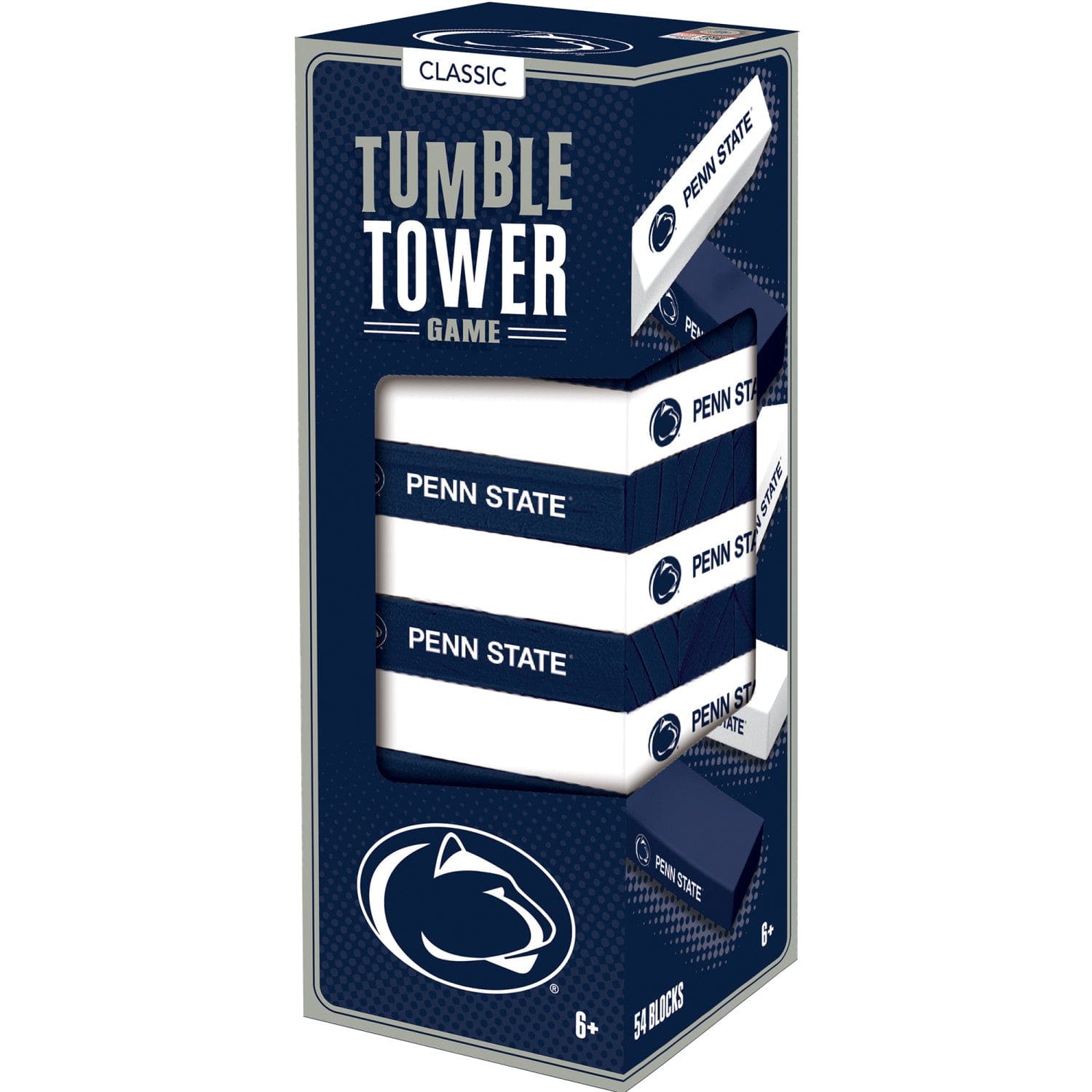 Enjoy this classic wooden NCAA Team Tumble Tower game featuring 54 NCAA team themed wooden blocks. Be the last player to stack a block without causing the tower to tumble… the higher the tower grows, the harder the challenge!