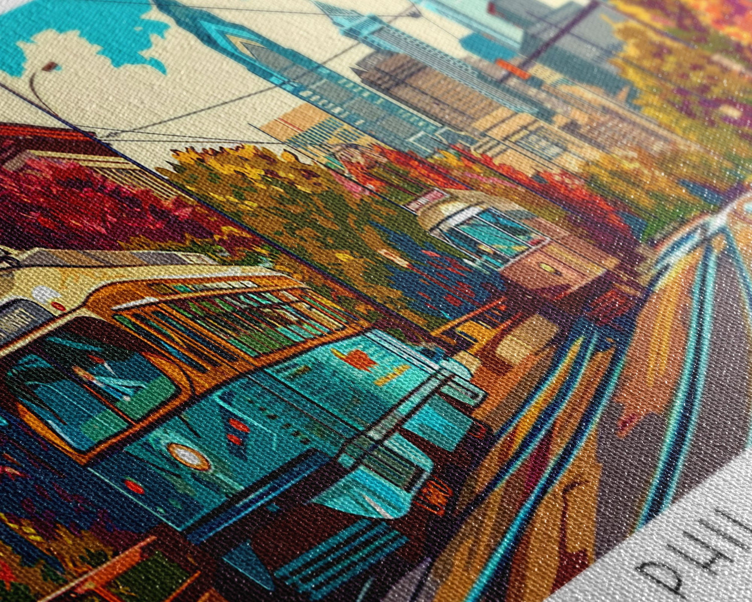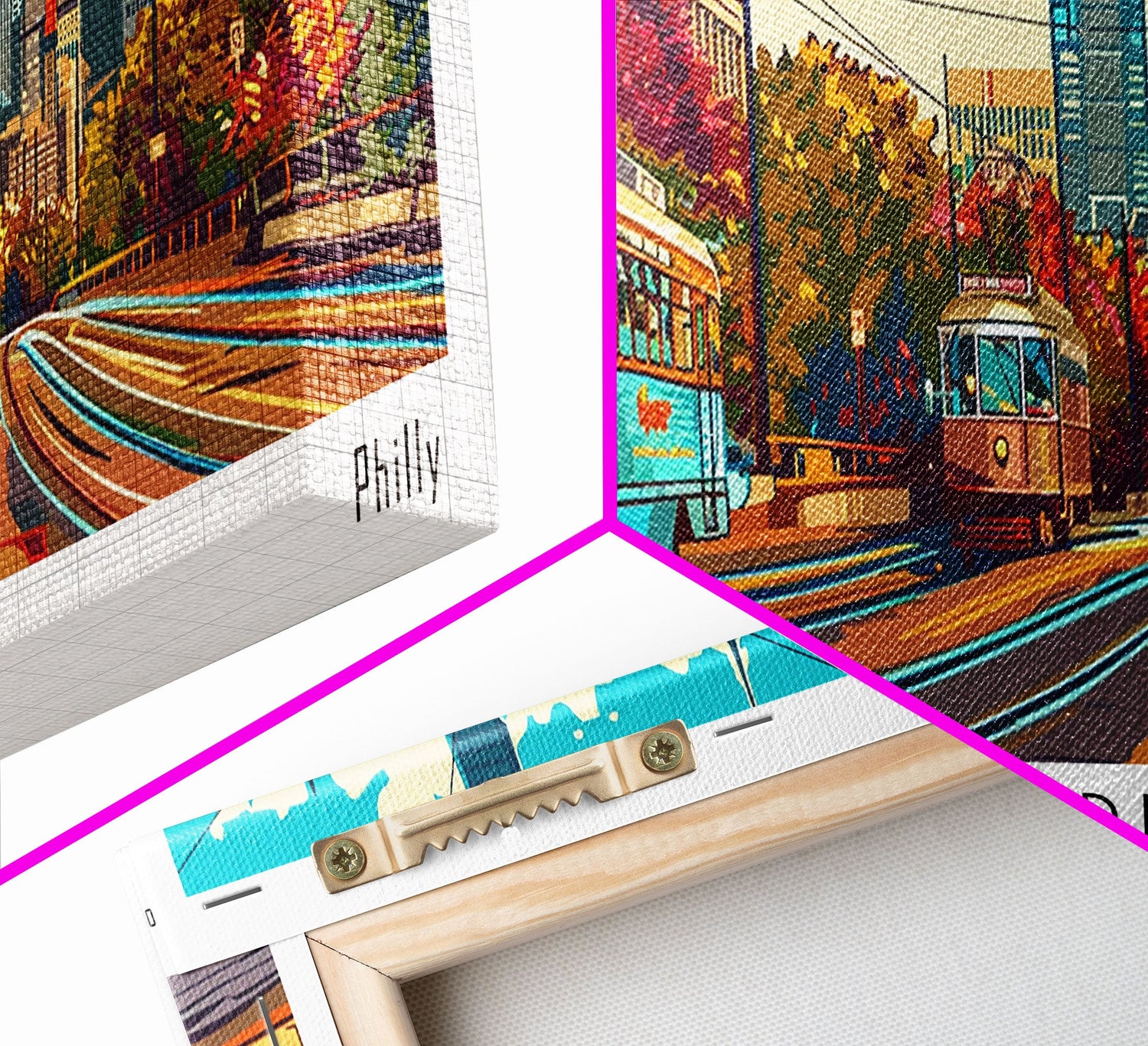 Philadelphia Pennsylvania Panoramic Painting, Retro Style Framed Canvas Print, Mid Century Modern Wall Art, Pop Art Travel Poster