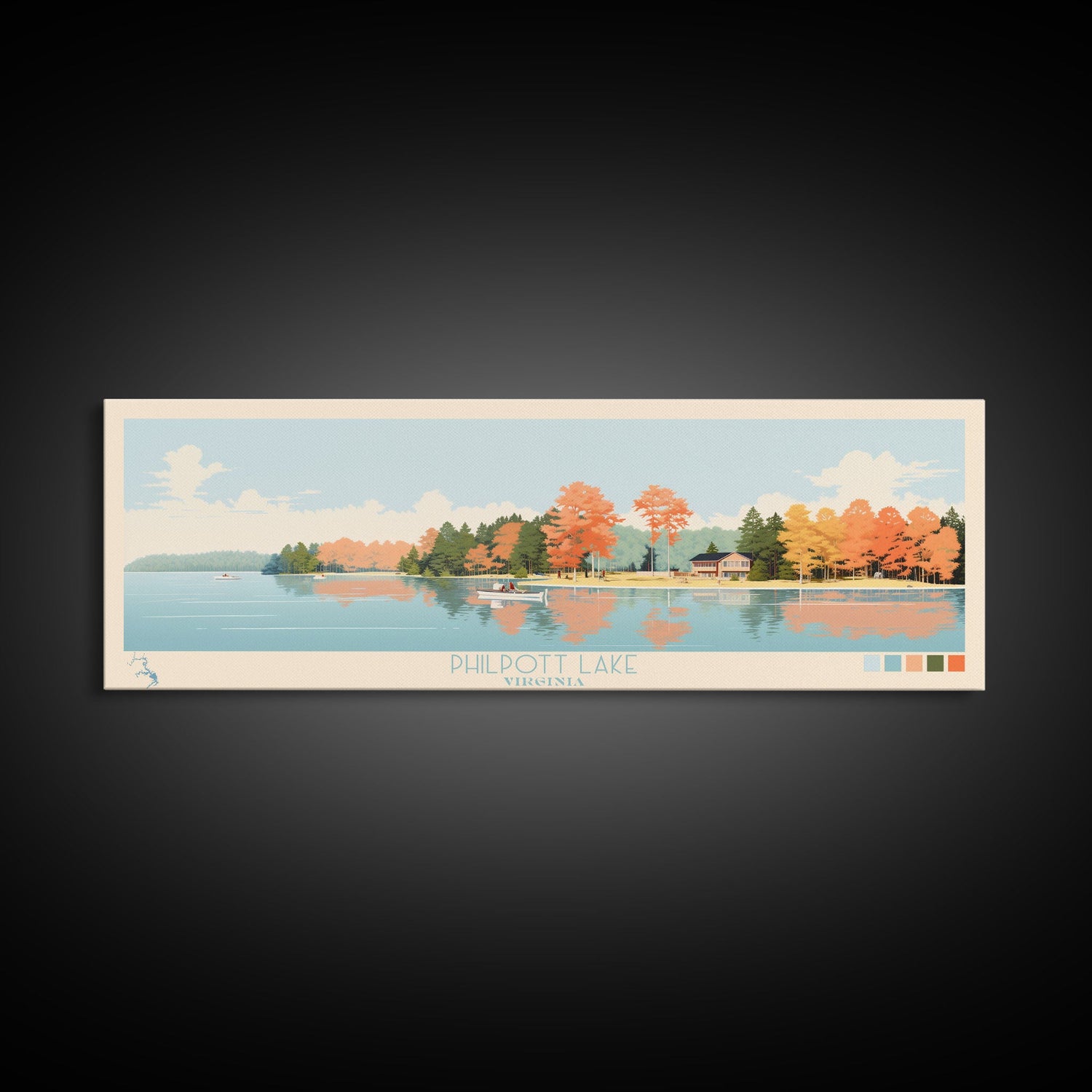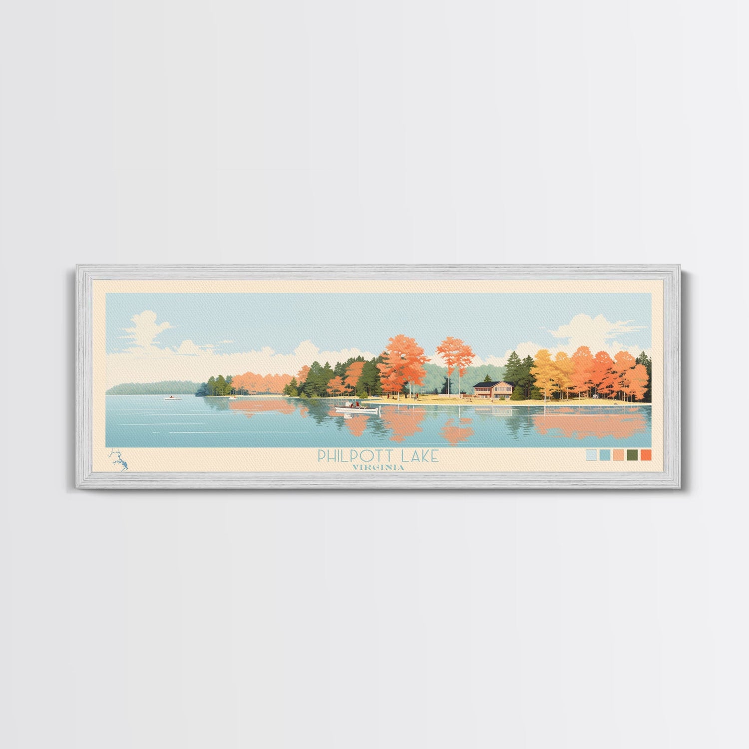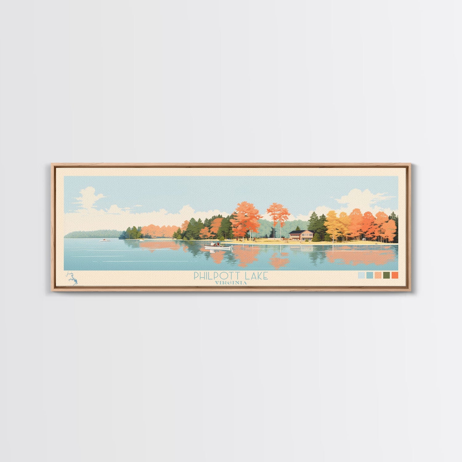 Philpott Lake, Virginia Framed Canvas Print, Panoramic Wall Art, Midcentury Modern, Pop Art, Home Decor, Travel Poster, Living Room Art