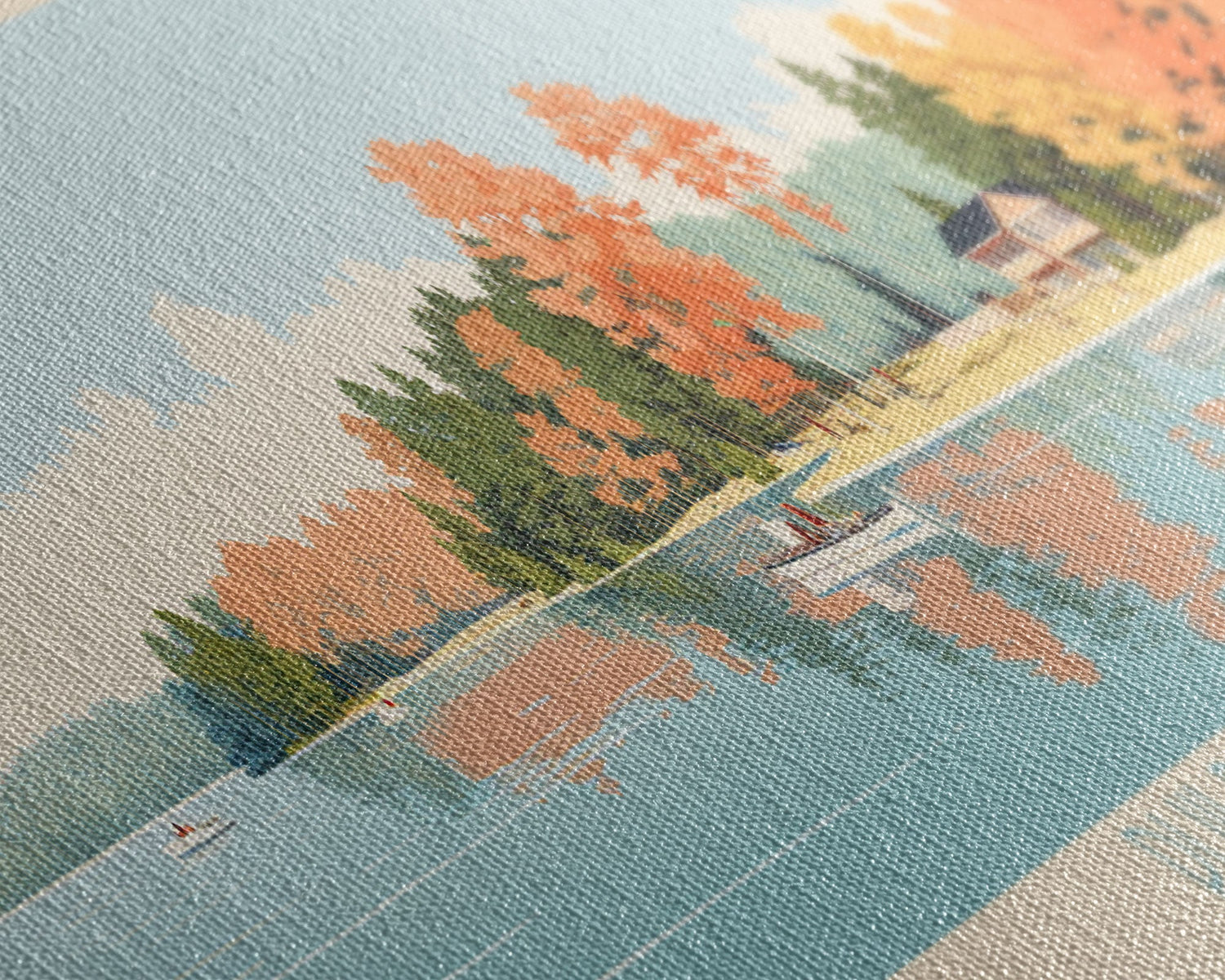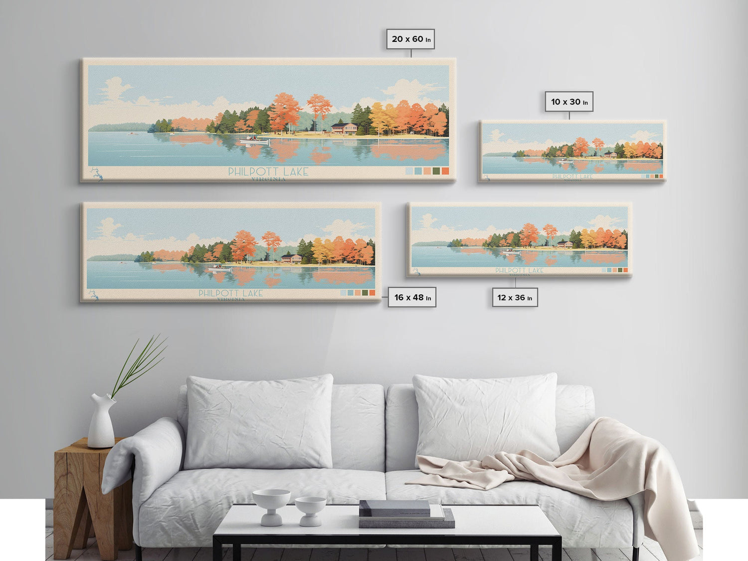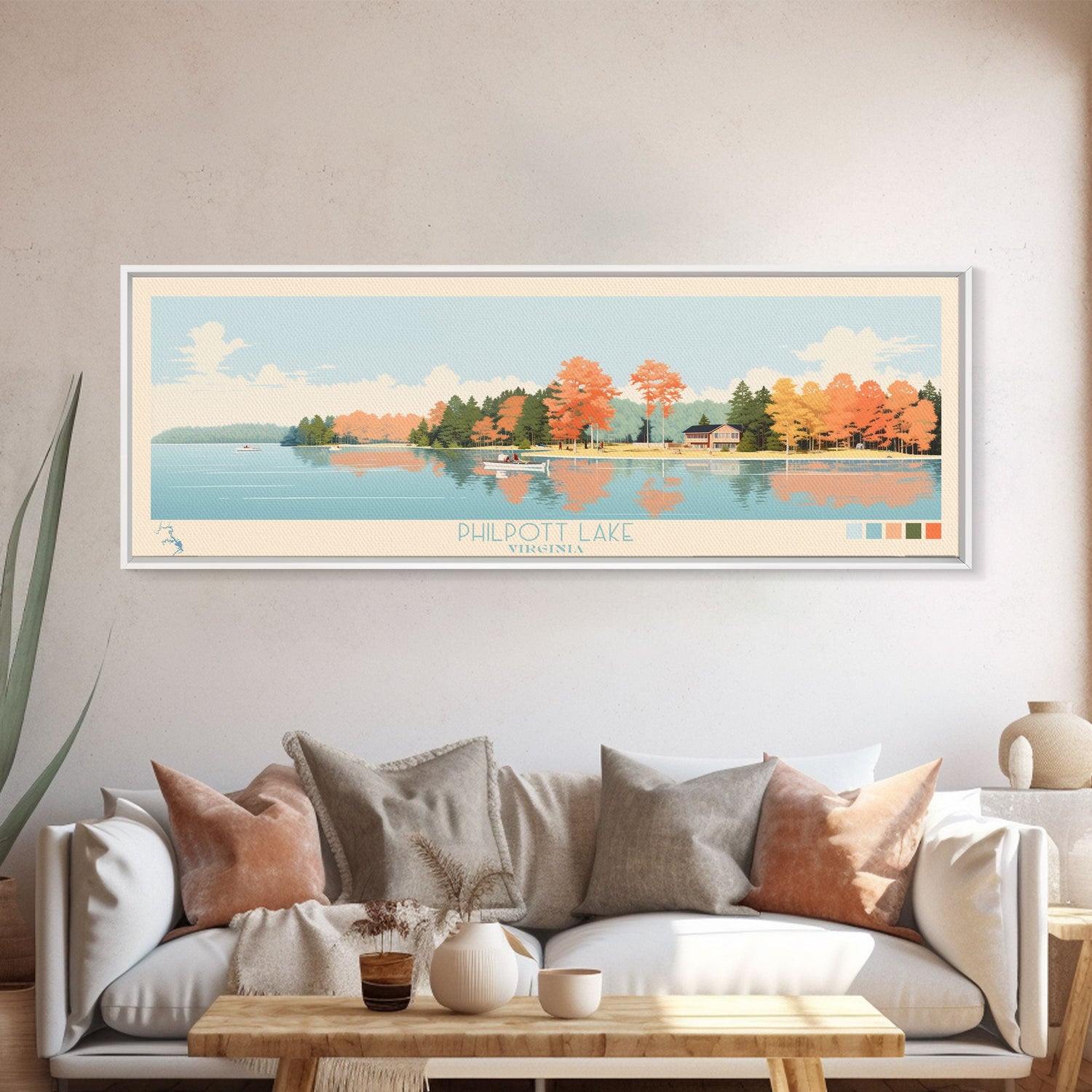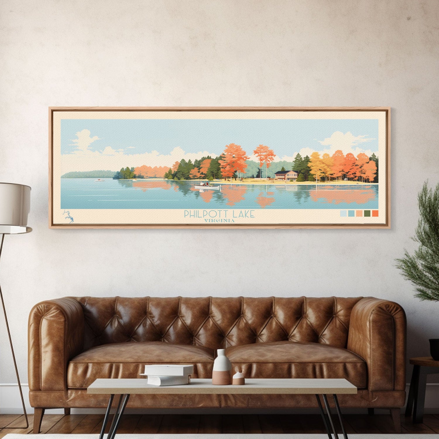 Philpott Lake, Virginia Framed Canvas Print, Panoramic Wall Art, Midcentury Modern, Pop Art, Home Decor, Travel Poster, Living Room Art