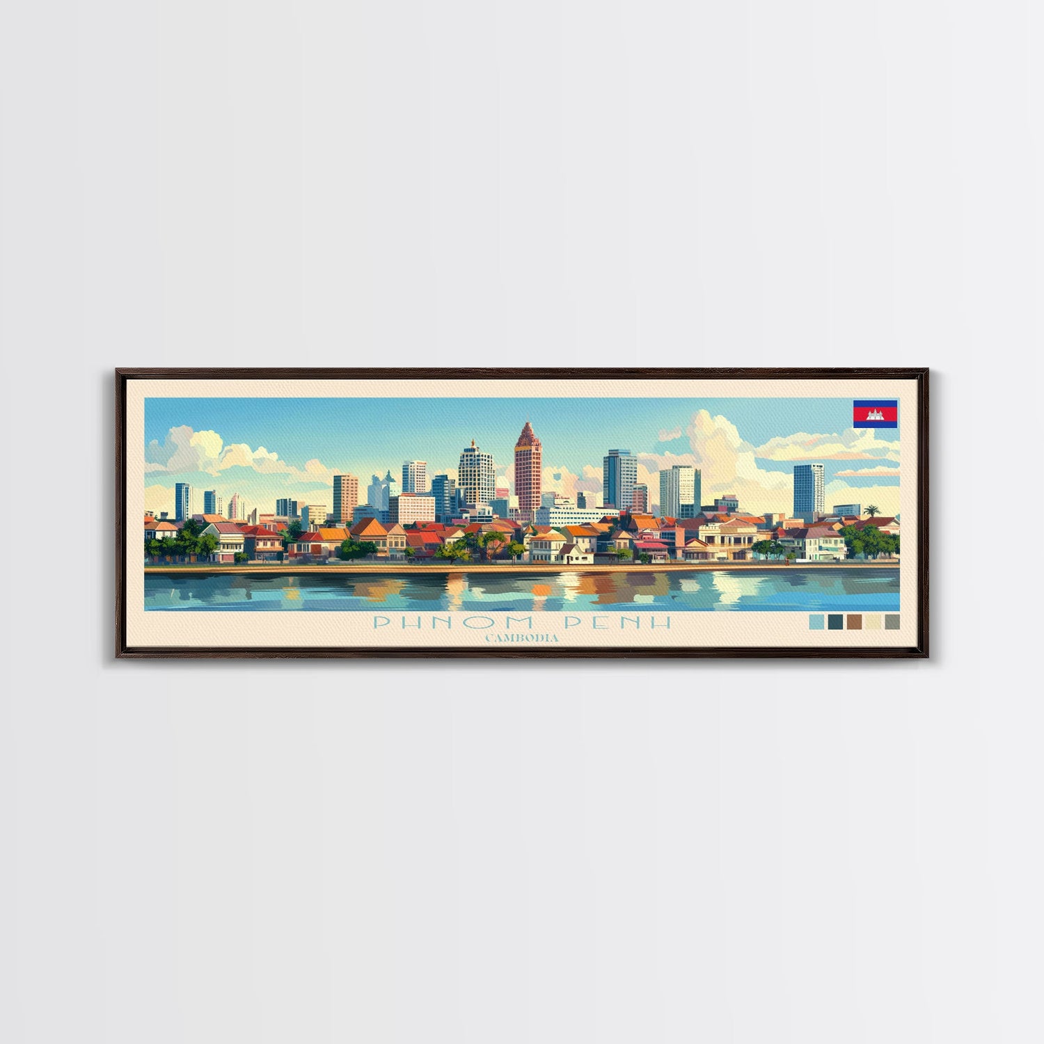 Phnom Penh, Cambodia Panoramic Travel Poster Canvas Print, Phnom Penh, Cambodia Painting, Cambodia Art, Phnom Penh Travel Art, Guest Room Painting