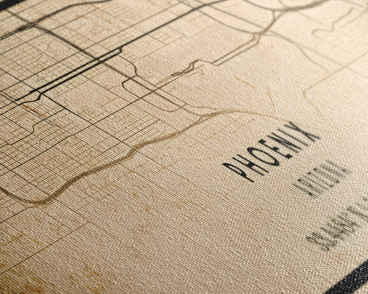Phoenix Arizona Panoramic Street Map, Framed Canvas Art, Arizona United States Road Map Wall Art, Office Wall Art, Wall Decor for Office