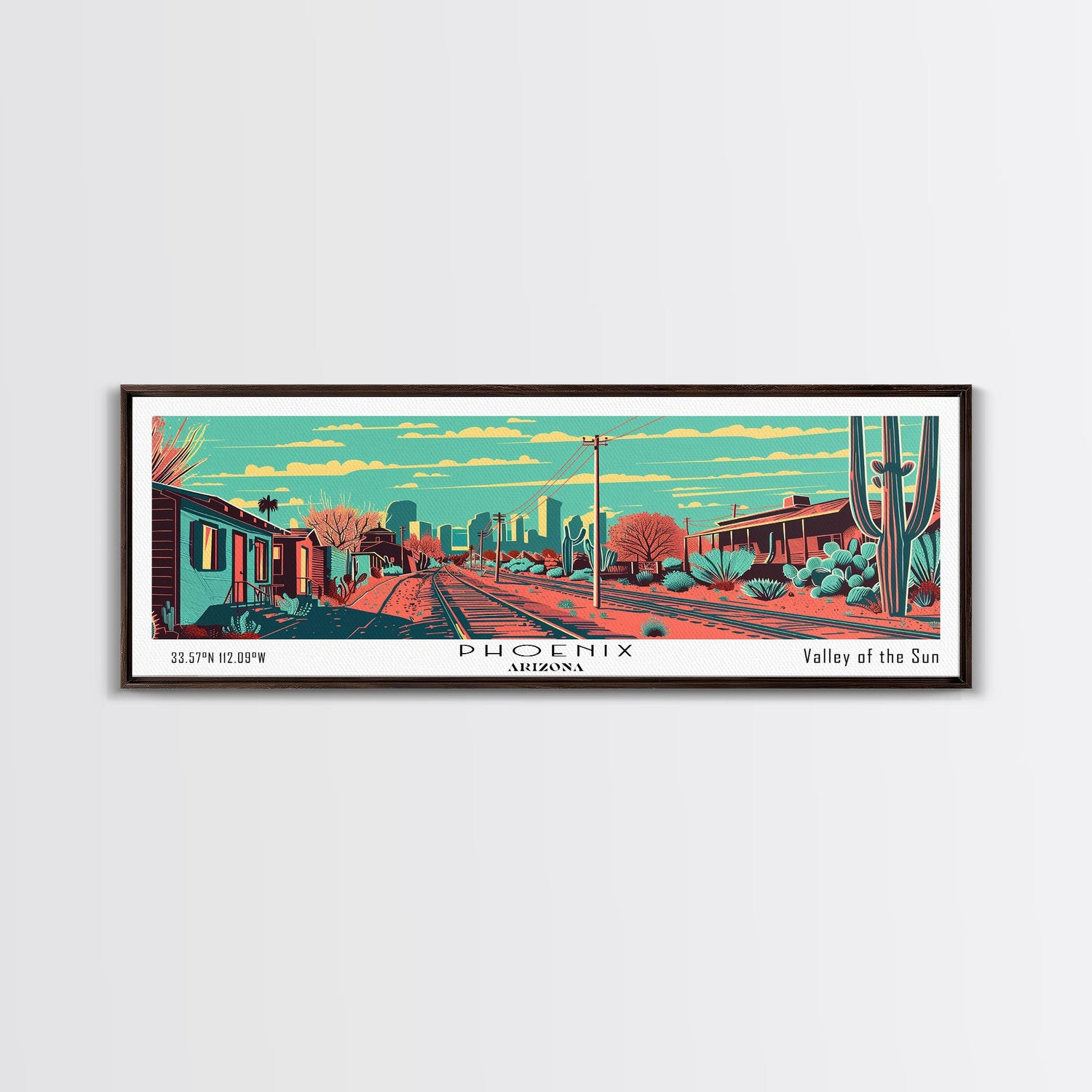 Phoenix Arizona Panoramic Wall Art Framed Canvas Print, Travel Poster, Mid Century Modern Art, Pop Art Style, Home Decor, Living Room Art