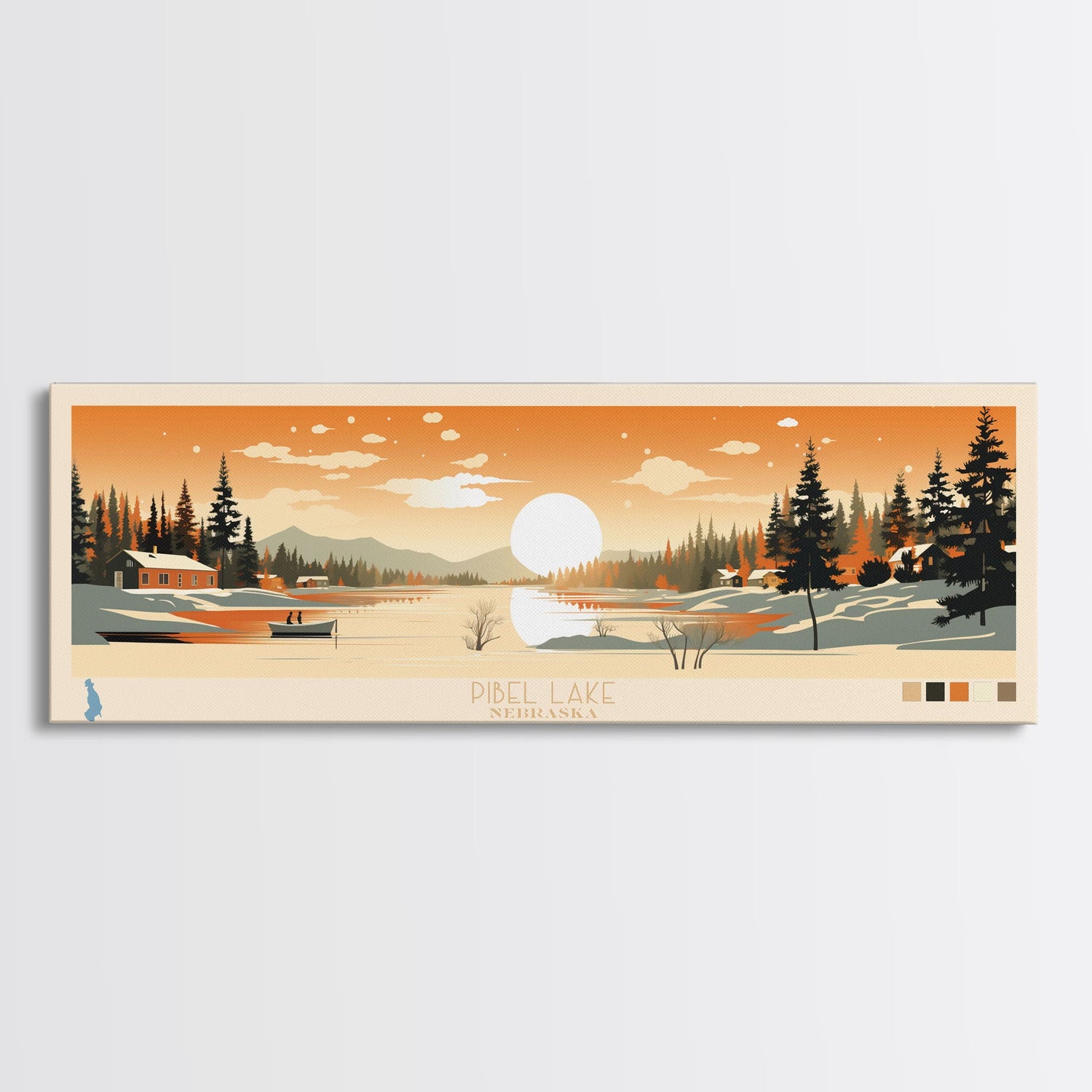 Pibel Lake, Nebraska Framed Canvas Print, Panoramic Wall Art, Midcentury Modern, Pop Art, Home Decor, Travel Poster, Bedroom Art