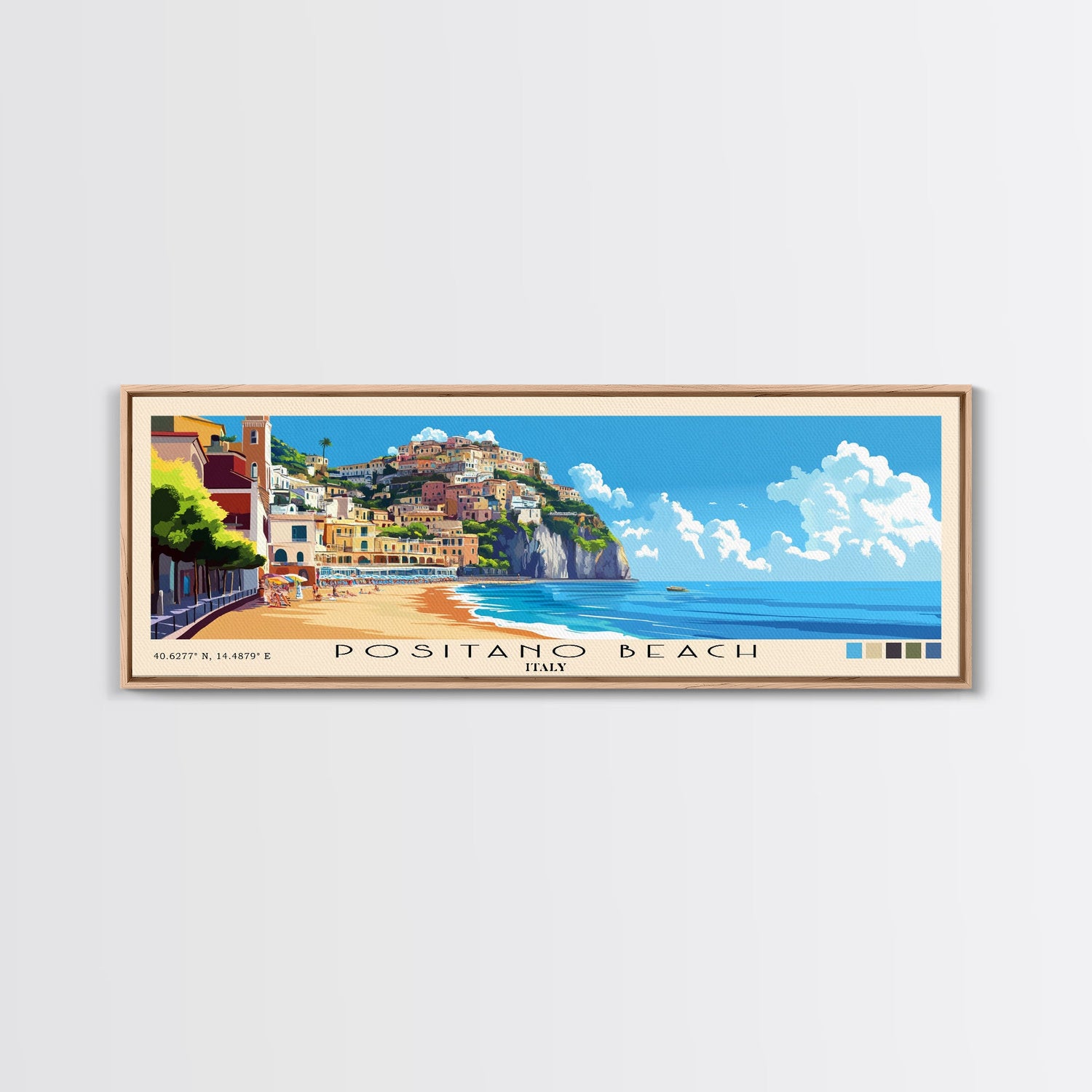 Positano Beach, Italy Panoramic Print, Vacation Gift, Italy Wall Art, Beach Painting, Beach Decor, Beach Or Lakehouse Art