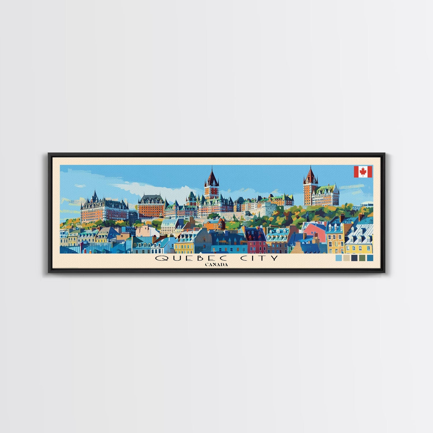 Quebec City, Canada Panoramic Canvas Print, Quebec City, Canada Painting, Canada Art, Quebec City Travel Poster, Travel Art, Vacation Gift