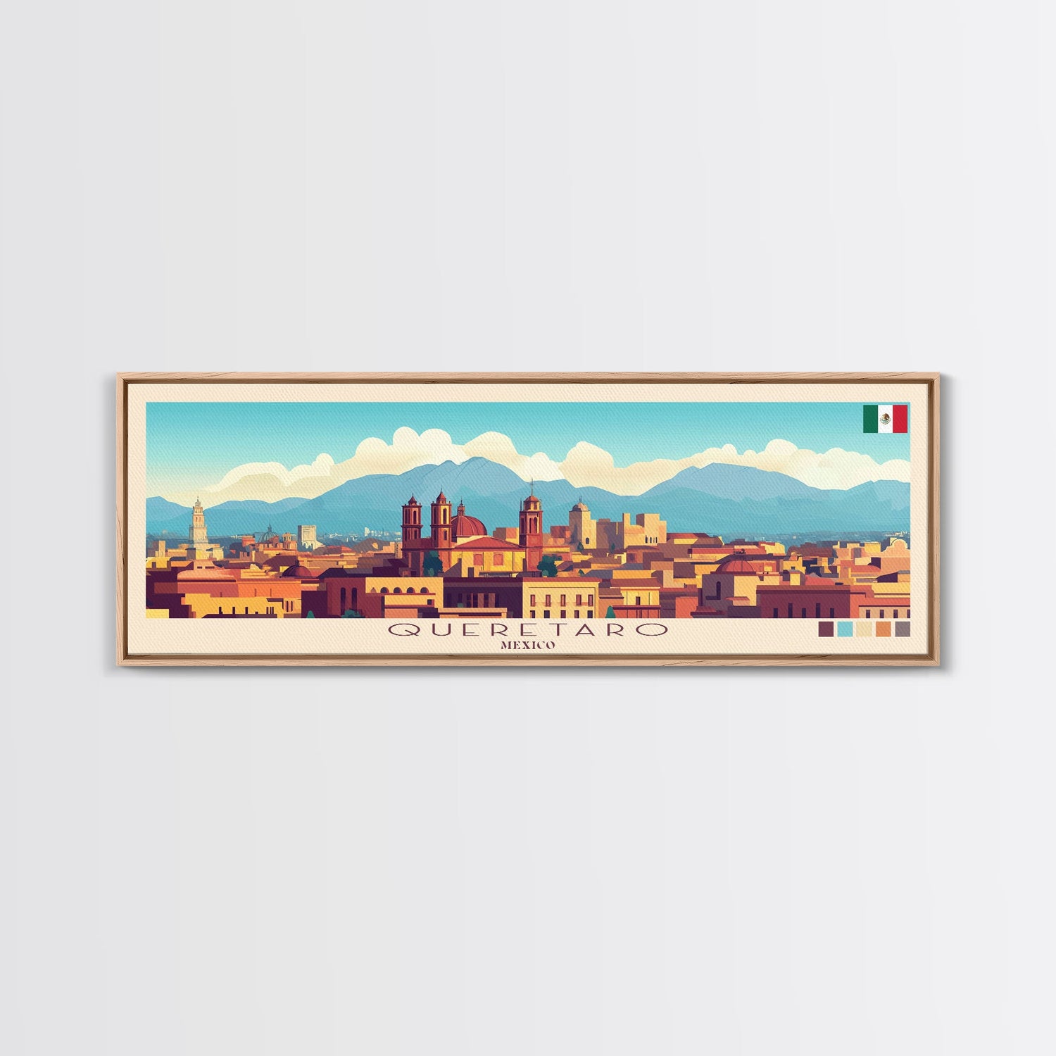 Queretaro, Mexico Panoramic Travel Poster Canvas Print, Queretaro, Mexico Painting, Mexico Art, Queretaro Travel Art, Living Room Painting