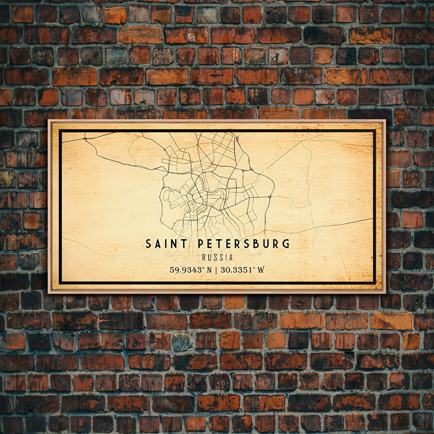 Saint Petersburg map print poster or framed canvas, St. Petersburg Russia map print canvas, city map print poster canvas, Vintage Travel Art