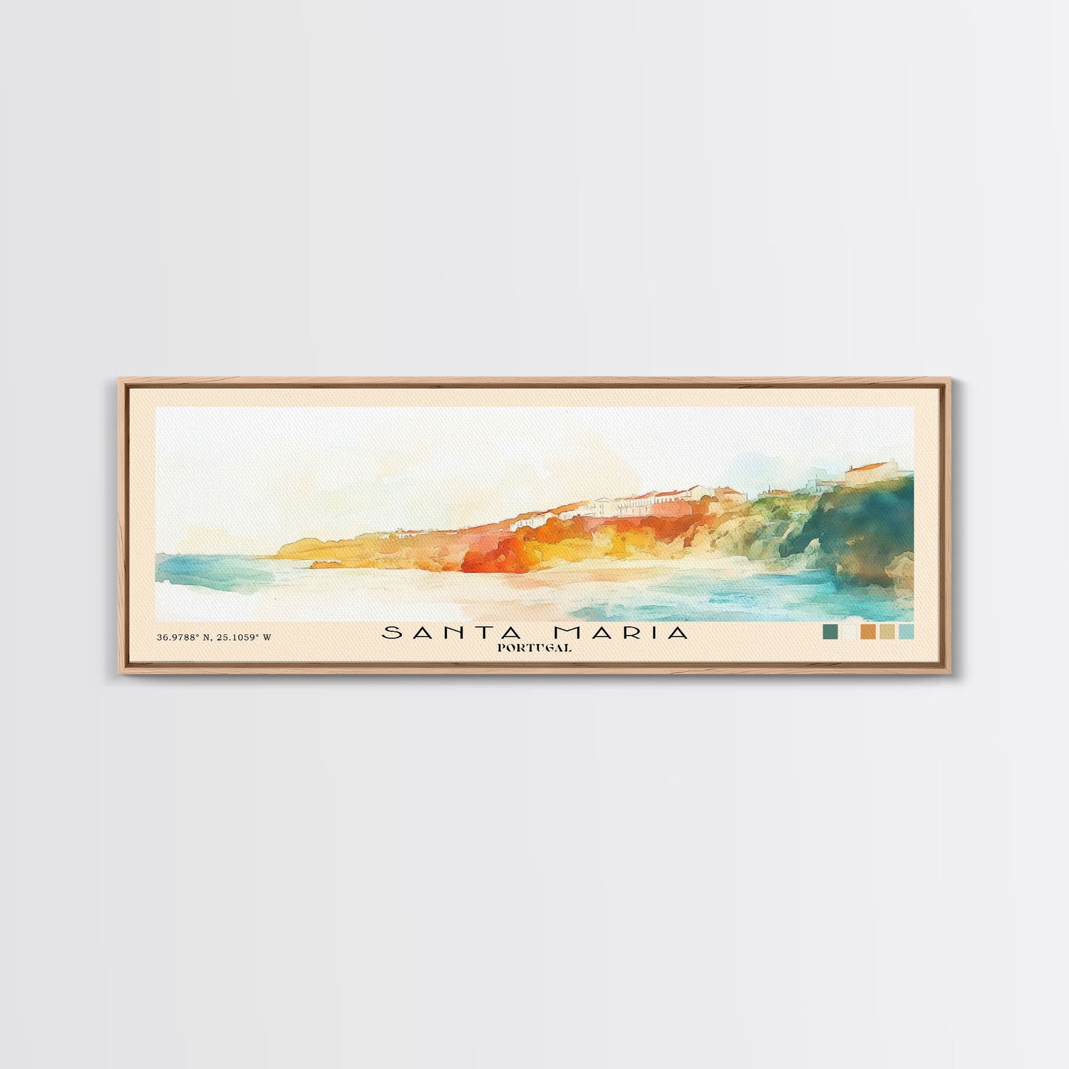 Santa Maria, Portugal Watercolor Beach Print, Vacation Gift, Portugal Wall Art, Framed Canvas Print, Framed Beach Painting