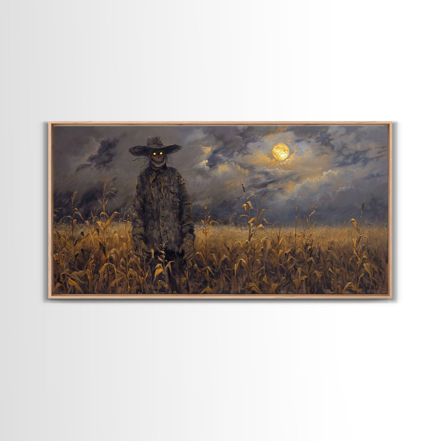 Scarecrow Under A Full Moon - Framed Canvas Print - Spooky Wall Art - Halloween Decor - 10x20 Inches / Gallery Wrap Canvas - Ready To Hang está agotado y se enviará tan pronto como vuelva a estar disponible.